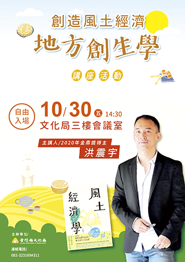 如何讓原本立意良善的「地方創生」,不致淪為政策口號或行銷話術,關鍵在於深入理解歷經時間累積與空間形塑的地方風土,並能據此為地方量身打造發展策略;在這網路科技盛行,經濟變動快速的時代,如何讓「老風土」創造「新商機」?目前正是最夯的議題。 金門縣文化局將於10月30日下午2時30分於文化局三樓會議室,邀請甫獲2020年金鼎獎圖書類-非文學圖書獎得主的洪震宇老師擔任講座,期望經由他的歸納、演繹風土文化的創新思維,提出風土設甫的完整架構,循序漸進地引導返鄉青年、公務人員、相關產業與社區工作者,透過確切可行的實踐方法,以及自我能力的培養鍛練,創造出每個地方獨一無二的風土經濟價值。 洪震宇,以說故事見長,長期在台灣農村小鎮蹲點,挖掘風土資源與文化脈絡,根據多年累積的心法,歸納整理出許多引領地方轉型的實際策略、方法與步驟,並透過實作驗證。走入地方10餘年,看著扶植地方的政策從「社區營造」來到「地方創生」,洪震宇認為,「社區創造比社區營造更重要」,隨著時代改變,社區的經營意識應該要跟著活化,帶入更多「創新」的思維與作法。 曾任《天下雜誌》副總編輯、創意總監,以及《GQ》國際中文版副總編輯,現為自由作家的洪震宇。曾獲開卷美好生活書獎、金鼎獎優良作品推薦、入選台北國際書展大獎、經濟部財經管理傳記類金書獎,並多次獲誠品選書。 文化局表示,洪震宇老師不高談理論概念、也不只羅列案例報導,而是透過清晰歸納各地的實務經驗,進而定位問題、提出方法與操演練習,循序漸進指引公務人員、相關產業與社區工作者,朝著築夢踏實的道路前進,歡迎有興趣之民眾自由入場聆聽。