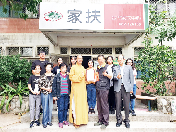 福建省金門縣佛教弘法基金會(海印寺)啟動年終寒冬送暖慰問活動,昨(29)日一早,海印寺性海法師偕同基金會董監事王漢文、許秀治、吳素蘭及工作人員一行,抵金門家扶中心捐贈5萬元善款,將救助家扶中心待助家庭共計25戶,每戶發送慰問金二千元,由家扶中心主任李桂平代表接受。 性海法師表示,今年因疫情所及,弱勢家庭受到更大的影響,希望在寒風將起之時,提供關懷給這些弱勢兒童家庭,讓他們可以感受到社會大眾關懷的溫暖。性海法師同時關心家扶中心兒童扶幼館的進展,也期勉家扶中心完成扶幼館,並在兒童福利服務的領域上,能更發揮社福機構的功能,一起來造福金門地區弱勢兒童。家扶中心如有需海印寺助一臂之力,海印寺也會盡力來幫忙和協助,讓金門成為一個溫馨安詳的居住福地。 家扶中心主任李桂平表示,海印寺常年協助及照顧家扶中心的弱勢家庭,讓兒童們安心向學及順利成長,不僅僅是地方宗教信仰中心,也是恩典澤被的佛門聖地,受到金門人民的尊崇。從家扶中心扶幼館建館專款的協助,以及兒童家庭急難救助的提供,都有海印寺佛光普照的恩德,家扶中心也會在性海法師的勉勵下,自我期許在扶助兒童的領域及範疇上,廣開扶助門和及時到位的協助,作為服務弱勢兒童及其家庭的最終目標。