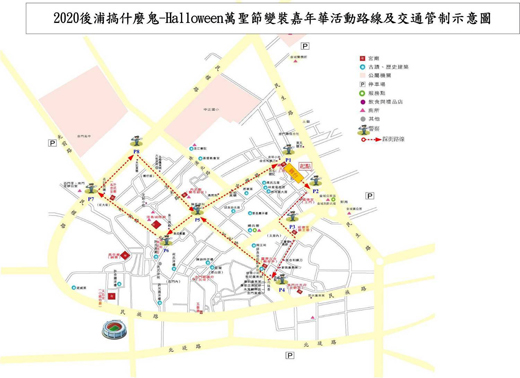 金城鎮公所將於明(31)日下午5時30分至9時30分在金城鎮北鎮廟至中興路146巷口舉辦「2020後浦搞什麼鬼-Halloween萬聖節變裝嘉年華活動」,並於金城市區進行踩街活動。因應活動可能帶來之人潮與車潮,金門縣警察局金城分局將於活動周邊道路實施交通疏導管制工作,以維道路之行車順暢及人車安全,分局長胡淑淨並呼籲前往參與之民眾及行經該路段之駕駛人配合員警之指揮。 當日活動交通疏導管制措施如下: 一、第一階段:變裝踩街嘉年華(如交通疏導崗示意圖) (一)時間:109年10月31日下午6時30分至7時30分。 (二)地點:金城市區街道(集結時間下午5時50分~6時20分)。 (三)踩街路線:北鎮廟(舞台)出發-珠浦北路5巷-模範街-貞節牌坊-莒光路-中興路-光前路(城隍廟)-民權路-莒光路-中興路-北鎮廟(舞台)終點。 (四)由交通管制人員依踩街隊伍行進路線,管制車輛進入。 二、第二階段:萬聖變裝才藝大賽 (一)時間:109年10月31日下午7時30分至10時。 (二)中興路146巷與民生路9巷口舞台前。 (三) 車輛(含汽機車)一律禁止進入會場(救護車及消防車除外)。 三、道路轉彎處、路口禁止停放車輛及嚴禁雙邊停放車輛。