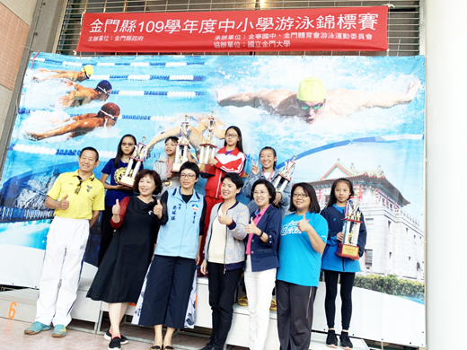 金門縣109學年度中小學游泳錦標賽昨日假金寧中小學游泳池辦理,國小至高中(職)共有20校219位選手報名參賽,經過為期一日的激烈競賽後圓滿落幕,由中正國小、金城國中、金門高中抱走精神總錦標,堪稱最大贏家。 由金門縣政府主辦,金寧中小學承辦、金門體育會游泳運動委員會、金門大學協辦的109學年度中小學游泳錦標賽,昨日假金寧中小學游泳池展開國小及國、高中賽程,分個人及團體賽,計有20校、219位選手報名角逐各組各項賽事,吸引地區中小學各級學校游泳好手報名競技,各校校長、教練、家長等人到場為選手加油。 經過為期一日的激烈競賽後於下午3時30分圓滿落幕,經大會統計成績後各組精神總錦標獎,國小組由中正國小、國中組金城國中、高中組金門高中贏得第一。大會裁判長許煥生、教育處督學楊珮瑤、中正國小校長蔡雪芳、金鼎國小校長曾秀玲、上岐國小校長薛奕龍、金寧中小學校長陳雅蘭於閉幕頒發獲獎個人及團隊。 各項比賽獲獎名單如后: 精神總錦標:國小組,第一名中正國小、第二名金鼎國小、第三名何浦國小、第四名賢庵國小、第五名上岐國小。國中組,第一名金城國中、第二名金湖國中、第三名金沙國中。高中組,第一名金門高中。 個人項目前三名分別如下: 50公尺自由式: 小女第一名中正國小廖千媛、第二名何浦國小王璿蓁、第三名中正國小李宣穎。小男第一名金鼎國小黃弈捷、第二名中正國小李瑾琯、第三名中正國小許任棋。中女第一名金城國中黃畇溱、第二名金城國中陳瑾誼、第三名金城國中張沛羽。中男第一名金城國中吳宇棠、第二名金城國中楊彥博、第三名金湖國中李怡農。高女第一名金門高中吳孟甄、第二名金門高中楊可欣、第三名金門高中方宜凡。高男第一名金門高中李宥德、第二名金門高中吳亭佐、第三名金門高中林伯謙。 50公尺蛙式: 小女第一名中正國小廖千媃、第二名中正國小李宣穎、第三名賢庵國小李宥萱。小男第一名中正國小許任棋、第二名中正國小呂虹毅、第三名中正國小樊天璽。中女第一名金城國中蔡侑岑、第二名金城國中陳品妤、第三名金沙國中王晨恩。中男第一名金城國中李宸佑、第二名金城國中吳宇棠、第三名金城國中楊彥博。高女第一名金門高中袁希婷、第二名金門高中許恩婷、第三名金門高中方宜凡。高男第一名金門高中吳家安、第二名金門高中林伯謙、第三名金門高中林煜宸。 100公尺仰式: 中女第一名金城國中張沛羽。中男第一名金城國中李宸佑、第二名金城國中林士愷、第三名金城國中蔡育勳。高男第一名金門高中吳亭佐。 100公尺自由式: 小女第一名中正國小廖千媛、第二名中正國小李宣穎、第三名何浦國小王璿蓁。小男第一名金鼎國小黃弈捷、第二名中正國小李瑾琯、第三名金湖國小顏上翔。中女第一名金城國中黃畇溱、第二名金城國中陳品妤、第三名金城國中陳瑾誼。中男第一名金城國中張佑安、第二名金城國中楊彥博、第三名金寧國中陳科宇。高女第一名金門高中袁希婷、第二名金門高中吳孟甄、第三名金門高中楊可欣。高男第一名金門高中李宥德、第二名金門高中張皕翔、第三名金門高中唐偉良。 100公尺蛙式: 中女第一名金城國中陳品妤、第二名金城國中蔡侑岑、第三名金城國中楊恭仁。中男第一名金城國中楊彥博、第二名金城國中張佑安、第三名金湖國中盛俊杰。高女第一名金門高中袁希婷、第二名金門高中許恩婷、第三名金門高職楊翊暄。高男第一名金門高中吳家安、第二名金門高中林伯謙、第三名金門高職呂家宇。 50公尺仰式: 小女第一名中正國小廖千媛、第二名何浦國小王璿蓁、第三名中正國小廖千媃。小男第一名金鼎國小黃弈捷、第二名中正國小李瑾琯、第三名中正國小呂虹毅。中女第一名金城國中黃畇溱、第二名金城國中張沛羽、第三名金城國中蔡侑岑。中男第一名金城國中張佑安、第二名金城國中李宸佑、第三名金城國中林士愷。高女第一名金門高中袁希婷、第二名金門高中吳孟甄、第三名金門高職洪毓雯。高男第一名金門高中李宥德、第二名金門高中洪鉅翔。 50公尺蝶式: 小女第一名中正國小廖千媛、第二名中正國小李宣穎、第三名中正國小廖千媃。小男第一名中正國小李瑾琯、第二名中正國小許任棋、第三名金鼎國小黃弈捷。中女第一名金城國中黃畇溱、第二名金城國中陳品妤、第三名金城國中蔡侑岑。中男第一名金城國中張佑安、第二名金城國中吳宇棠、第三名金城國中李宸佑。高女第一名金門高中吳孟甄、高男第一名金門高中李宥德、第二名金門高中吳亭佐。 接力項目前三名分別如下: 小女100公尺自由式接力第一名中正國小、第二名上岐國小、第三名賢庵國小。小男100公尺自由式接力第一名中正國小、第二名金鼎國小、第三名金沙國小。中女200公尺自由式接力第一名金城國中、第二名金沙國中。中男200公尺自由式接力第一名金城國中、第二名金湖國中。高女200公尺自由式接力第一名金門高中。高男200公尺自由式接力第一名金門高中。小女100公尺混合式接力第一名中正國小。小男100公尺混合式接力第一名中正國小、第二名金鼎國小、第三名湖埔國小。中女200公尺混合式接力第一名金城國中。中男200公尺混合式接力第一名金城國中、第二名金湖國中。