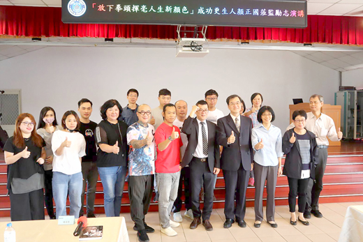 導演顏正國在金門取景拍攝的公益微電影《卸妝》,27日晚間在金沙鎮金東電影院舉辦首映會,顏正國親自出席,金門監獄把握這個機會,於昨(28)日邀請具有更生人身分的顏正國到監獄與受刑人見面,以「放下拳頭揮毫人生新顏色」為主題演講,勉勵受刑人,只要努力重新站起來,人生還是有機會的。 金門監獄表示,顏正國從小是非常知名的影星,雖然年輕時曾有過一段人生的低潮,但並沒有就此自我放棄,反而利用這段時間自我沉潛,下苦功練就了一手好字。並由積極重建家庭、復歸社會、投身公益及規劃創業,不因其更生身分反以其既有知名度現身說法,將所學書法技藝充分學以致用,讓民眾看到更生人努力的成果。 顏正國6歲就出道,曾經被譽為「天才童星」,至今已經拍過了近50部影劇作品。他曾經因為誤入歧途遭判刑入獄,不過父親的過世讓他醒悟過來,在獄中的日子,接受周良敦指導勤練書法,還曾經獲得全國書法大賽亞軍,出獄後他努力走出自己的新人生。去年首度擔綱劇情片「角頭2:王者再臨」的導演,就創下票房將近兩億的佳績;兩部由其執導的「如果」系列微電影,在影音平台Youtube上的播放點擊率都超過百萬次以上,成功轉型為導演。 金門監獄昨日也邀請張峰議(阿峰)演唱「手心裡的寶」及「一路走來」,他也是成功的更生人代表。他對家庭的感受與支持的力量很重要,他老婆寫給他的情書總共一千多封,可以放滿一整包執行袋,他就以這份支持轉換成歌曲,這兩首歌也是分別「卸妝」的片頭曲與片尾曲。 最後由阮橋本先生(鋼鐵爸)的贈書「倒著走的人生」,他能忍住喪子之痛,轉換為正面能量,還成立「新北市聖翔救援協會」現在多從事各種公益服務,如設置愛心冰箱、環臺送便當等。 金門監獄表示,法務部現正積極推動貫穿式司法復歸施政,借由顏正國導演現身說法、張峰議的演唱,與阮橋本的贈書「倒著走的人生」等正面能量,只要心念一轉,懷抱希望,持續不懈地前進,人生就會不一樣,促使收容人獲得更深層體悟人生的意義,及正向思考企劃未來人生。