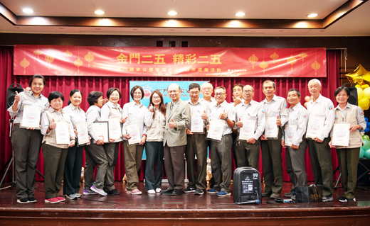 金門國家公園管理處昨日召開「金門國家公園志願服務聯繫會報暨年度績優志工表揚活動」,頒獎表揚108年度服勤績優及內政業務志願服務獎勵績優志工,金管處感謝所有志工夥伴無私的奉獻精神,致上最高的敬意,期許傳承希望綻放榮耀,共創國家公園品牌。 金管處表示,自成立至今共招募了7期的解說志工,目前共計118位,為感謝一路陪伴的志工夥伴,特別辦理績優志工表揚活動。獲獎志工分別為榮獲水獺獎的吳啟榮、葉麗珠、何美津、邱天火、陳書茶、陳志發、楊清風、林梨娟等8位志工;榮獲鱟獎的鐘信童、薛辰汝、許淑卿、李文良等5位志工;榮獲栗喉蜂虎獎的陳國民、林明薇與林華瑩等3位志工。另金管處曾處長也代表內政部頒發內政業務志願服務獎勵績優志工,分別為金質獎葉月枝、銀質獎蔡麗蓉與銅質獎陳玉等3位志工,感謝其對內政業務志願服務的推動與協助。 金管處志工聯誼會亦於當日辦理第10屆聯誼會會長改選,新會長由謝文甲志工獲得多數志工夥伴的認同,成為第10屆新任會長,同時頒獎感謝狀,感謝第8、9屆聯誼會陳雅雯會長與葉月枝總幹事兩位幹部的努力與辛勞。 金管處表示,自民國86年開始招募志工,迄今志工團隊已運作23年,將近四分之一的世紀,金門國家公園志工們協助管理處推動生態保育、環境維護、觀光遊憩、導覽解說等工作,服務時負責認真、親切周到、以客為尊的態度,深受各界遊客及民眾的稱讚與肯定,再次表達深深的感謝之意,未來仍需大家一路陪伴、共同成長,帶來更好更優質的服務。