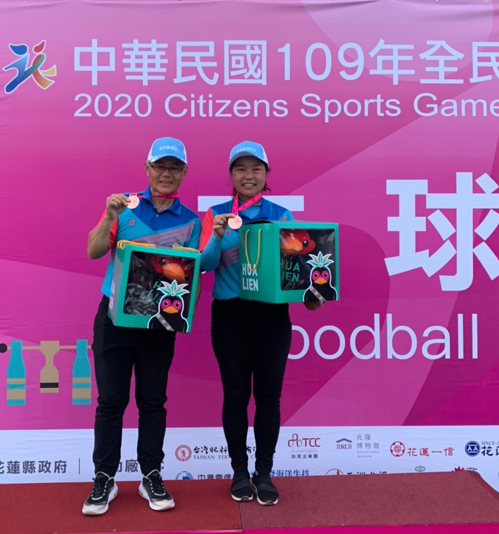 2020年全民運動會目前正在花蓮縣舉行,金門代表隊參加木球項目比賽,昨(20)日傳來捷報,由選手李貴昌和李素滿,參加「混合組木球桿數混雙賽」,最終拿到第3名,為金門再添一面銅牌。 李貴昌和李素滿均為金門的木球好手,過去參加木球比賽獲獎連連。其中李素滿幾乎近幾屆全民運動會都有好成績,2014年嘉義全民運動會,當時李素滿和王文進在混雙桿數賽拿下銅牌;2016年台中全民運動會,李素滿與蘇宥璇拿下女子雙人桿數賽金牌;2018年苗栗全民運動會,李素滿也和蘇宥璇在女子雙人桿數賽獲得第4名;今年花蓮全民運動會,李素滿再度為金門帶回一面銅牌。 而李貴昌在2018年參加全國「岳王盃」木球錦標賽,當時獲得個人第7名;今年3月同樣參加全國「岳王盃」木球錦標賽,金門木球隊勇奪男子團體冠軍,李貴昌就是其中一位隊員。今年6月,李貴昌更以第2名的成績獲選入第六屆「亞洲沙灘運動會」沙灘木球國家代表隊,實力不容小覷。 金門木球隊教練董燊表示,本次全民運動會木球賽,全國參賽者共男子275人、女子233人,競爭激烈,金門木球隊全力以赴,昨日金門隊混合雙人桿數賽李貴昌、李素滿先榮獲銅牌,女子個人球道賽鄭郁香晉級前四強,將於今(21)日繼續爭取獎牌。 金門木球代表隊近幾年參加全民運動會成績都不錯,2014年參加嘉義全民運動會,當時木球成績1金1銀2銅;2016年參加台中全民運動會,當時木球成績1金1銅;2018參加苗栗全民運動會,當時木球成績1金1銀。