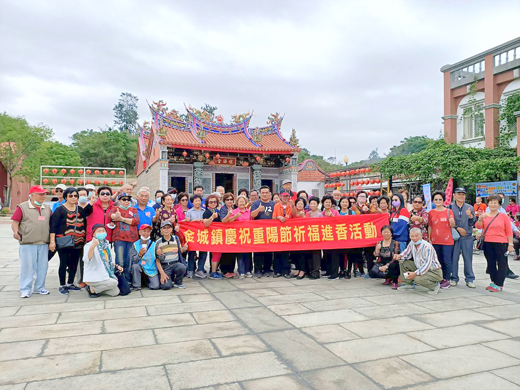 金城鎮公所於21日進行第一梯次重陽進香活動,近四百名轄區長者偕同出遊,金城鎮鎮長李誠智帶領長者們前往田浦泰山廟等知名廟宇上香,祈求庇佑閤家大小平安順遂,許多久未見面的老朋友對於能走出戶外活動筋骨、拜拜祈福,都感覺開心和歡喜,並且相約明年再來「憩頭」! 金城鎮109年重陽節進香之旅活動,於10月21日起一連兩天舉辦兩梯次進香活動,雖然八點三十分集合,但是平日習慣早起的長輩們七點半左右,便陸續到鎮公所前集合等待出發,大家都興高采烈要參與活動。 首日的進香活動,有近四百位來自各里的長者,搭乘十部遊覽車,在鎮長李誠智及志工的陪同下,分成兩路線,分別前往田浦泰山廟、金沙鶯山廟、料羅順濟宮、西浦頭李光前廟、雙鯉古地關帝廟進香祈求家人平安,有的是夫妻同行,也有些是三五好友相約報名,走出戶外,也藉此促進老人身心健康、快樂。 中午參加進香的長者並在盈春閣會餐聯誼,縣府社會處長董燊也代表縣長楊鎮浯到場致意,現場還有金城鎮代表會主席陳天成、多位鎮代表、各位里長到場祝福長者提前渡過一個愉快的重陽佳節。