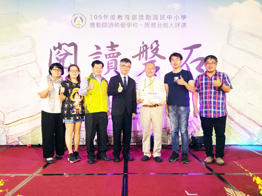 教育部辦理「109年度獎勵國民中小學推動閱讀績優學校團體及個人評選」(閱讀磐石獎),得獎成績公布,由金城國民中學脫穎而出,榮獲國中組閱讀磐石學校的榮譽。校長許維民表示,獲得這份殊榮,是對學校長年推動閱讀教育與整合閱讀環境作為上的肯定,證明城中現在閱讀教育推動上,績效卓著且獲得各界肯定,肩頭上也多了一份持續深耕閱讀教育的重任。 教育部獎勵閱讀推動績優團體及個人計畫,金城國中今年獲頒為閱讀磐石學校,於日前(10月14日)赴台領獎,與全國其他14所國中共同獲得此項殊榮。 城中自101年起耕耘閱讀教育,以「島嶼愛閱」為核心持續加深加廣,近年更配合十二年國教新課綱推動國語文、英語文、數學、自然與社會各領域閱讀課程,藉由閱讀辯論激發學生閱讀動機;不因為地處離島受到疏離,更利用海洋為媒介,由自然領域教師共同研發,推動校本閱讀課程「金城海之鏈」文本融入海洋閱讀,獲得評審青睞。 金城國民中學在許維民校長帶領下,以「我們在離島,我們愛閱讀」方案名稱參加複選,集結學校近年在閱讀教育所推動的成果。本次複選於7月15日,由校長許維民帶領學校閱讀推動小組代表:教務主任王振漢、課程研發組長王光明、圖書館幹事楊珮芬與家長志工陳佩妤一行五人赴台報告,分享從「閱讀萌芽期」,歷經「澆灌閱讀」而到「喜閱讀書樂」等三階段,各個階段學校行政與教師們如何引導學生閱讀,並嘗試將閱讀的成效連結至寫作與創作等層面。 在與評審的問答中,充分表達學校在閱讀方面的資源運用與整合,及推動閱讀的策略與成效,深受評審肯定與讚許,獲得教育部「109年閱讀磐石學校國中組」獎項。 校長許維民表示,金城國中今年爭取閱讀磐石獎已是第三次。本次就前兩次的失敗經驗中汲取教訓,從最弱的閱讀課程發想,藉由新課綱的推動,促成了國語文「浯愛浯鄉話後浦」、英語文「校園英語」、自然「金城海之鏈」等領域校訂課程,融入走踏校園與閱讀家鄉與關切海洋等議題。另外先前所辦理以圖書館為中心的閱讀活動,諸如「與作家有約」、「早自習晨讀時間」、「閱讀心得比賽」、「借書王」等推廣閱讀活動。隨著閱讀融入課程,語文領域國文科研發「金門文學」、自然領域開發了「浯島FUN科學」與社會領域的「印象金門」課程,讓各領域課程都能融入閱讀,課程不再是冰冷的教科書,而是一道道閱讀風景線,從而能讓學生領略到閱讀的樂趣。讓閱讀活動成為學習的常態,在潛移默化下,期望讓注重閱讀素養的模擬考與會考與寫作測驗成績有明顯進步。 許維民校長再強調,各校所推動閱讀教育的過程其實各有亮點,但就是需要一段時間的累積與彙整,才能具備足夠的能量來爭取佳績。本次能獲獎除感謝先前協助校內閱讀推動與爭取獎項行政端的全心投入,更要感謝全校師生的支持配合。有心爭取閱讀磐石獎的學校,能就閱讀磐石獎的各項指標為中心開展規劃,用心推動與經營,必然能獲得肯定,也期盼金門能真正成為一座閱讀的島嶼。