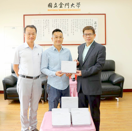 國立金門大學為使新冠肺炎疫情期間所有師生的健康得到更多的保障,校友會副理事長董森堡議員與迪伸電子公司共同捐贈UVC手持紫外線殺菌燈10組,以強化抗菌防護之效果,守護全體師生的健康,安心在校園中學習。 金大校長陳建民表示,今年全球性新冠肺炎疫情爆發以來,金大在校園中推行許多衛生防治措施,除勤量體溫、洗手和戴口罩外,並多次校園消毒和提醒同學注意事項等作為,以確保身心健康。在此期間,感謝各界人士捐贈額溫槍、口罩、次氯酸水、消毒酒精等防疫用品,讓同學可以安心學習。由該校校友會副理事長董森堡議員與迪伸電子公司合捐的UVC手持紫外線殺菌燈,將提供給全校師生共同使用,以提升校園的防疫能力。 董森堡指出,這次捐贈的防疫物資「UVC手持紫外線殺菌燈」乃是由迪伸電子研發成功,是一款拿到了第三方公正P2病毒實驗室的滅菌證書,能夠在三秒內就達成百分百抑制冠狀病毒、腸病毒的紫外光殺菌器。該用品可讓使用者在防疫設備多一個選擇,多一層防護效果,守護全體師生的健康。