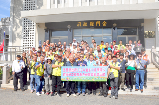 宜蘭縣政府勞工處昨由處長吳志宏率同各基層工會幹部一行七十餘人,抵金展開三天二夜的勞工教育縣外研習暨觀摩活動。昨下午並前往金門縣政府參訪拜會,受到社會處處長董燊熱烈歡迎。 董燊在歡迎宜蘭縣政府勞工處處長吳志宏率同各基層工會幹部一行時,也盛讚宜蘭縣的好山好水,歡迎昔日在金門服役老兵多多到各處走走看看,並給縣府指教和建議。 吳志宏也表示,金門大橋即將在明年完工,未來到小金門就不用再搭船前往,只要搭乘遊覽車就能往返大小金門。並建議基層工會幹部,來到金門一定要好好品飲金門高粱酒,並體會金門之美。