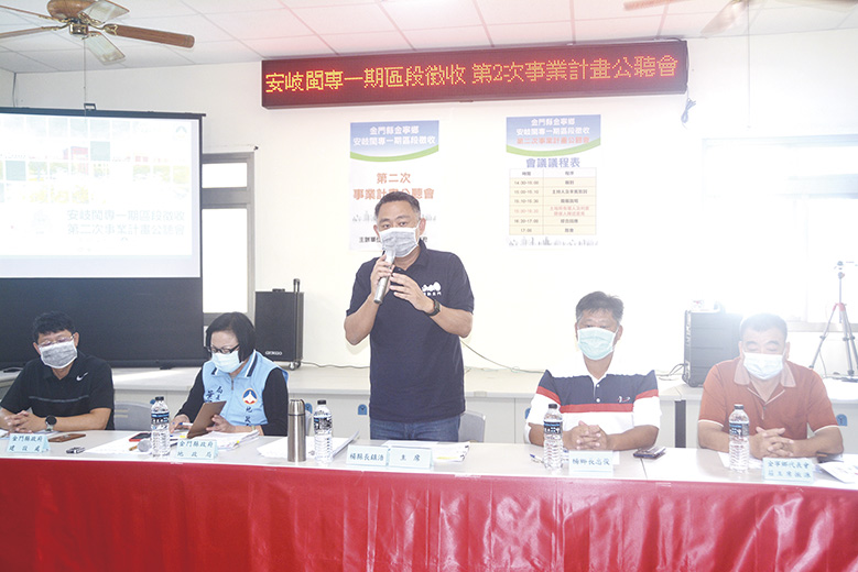 金門縣政府昨日下午在金寧鄉安美村辦公處舉行「安岐閩專一期區段徵收案」第2次事業計畫公聽會,縣長楊鎮浯指出,該案從規劃開始,迄今已經有二十五年,過程中有變化,他上任近二年,積極推動該案,期盼在土地所有權人支持下,加速該案早日開發完成,帶動金寧鄉地方發展。 公聽會於昨日下午三時假安美村辦公處召開,縣長楊鎮浯專程參與,聽取土地所有權人意見。金寧鄉長楊忠俊、鄉代會主席莊振源和地政局長葉媚媚、副局長呂清福及縣府相關單位、安美村長許三進與土地所有權人出席與會。 楊縣長指出,安岐閩專一期區段徵收案,最早是要提供給烏坵鄉使用,歷經二十五年的時間,過程中有變化,104年辦說明會後就停下來,從去年開始積極處理遭遇的長久問題,並於今年4月開始,地政局主動到府提供諮詢服務,藉由家戶拜訪,與地主面對面溝通,盼更清楚說明區段徵收相關資訊,化解地主對區段徵收之疑慮,爭取更多地主支持及認同,使開發案推動更加順利。 楊縣長表示,縣府推動安岐閩專一期區段徵收案,這是一件好事情,希望透過公聽會,更了解問題以及縣府可以配合事項,加速該案早日開發完成,帶動地方發展。 鄉長楊忠俊指出,該案從85年迄今還未有結果,楊縣長一上任就很重視該案,積極督促團隊來推動,已經有實質的進展。楊忠俊說,楊縣長很重視該案,也利用國慶連假召開公聽會,讓更多旅台的鄉親一起參與,提供有利地方發展的意見,共同來促成該案建設,發展地方。 楊忠俊感謝楊縣長重視金寧鄉的發展,並大力支持各項建設,包括興建的「安岐多元照顧中心」,未來可增加金寧鄉社區式長期照顧服務以及提供鄉親可近性的服務。 鄉代會主席莊振源指出,該區域土地原為農地和保護區,好不容易要推動區段開發,可以讓該區域從狗屎埔變成狀元地,土地價值翻倍甚至百倍,還可帶動金寧鄉發展。 地政局表示,「安岐閩專一期區段徵收案」開發面積17.81公頃,開發區位於金門大學及金寧中小學兩學校之中間區域,區位條件優良。開發後將興闢第一種閩南建築專用區(約6.04公頃)、第二種閩南建築專用區(約4.00公頃)及公共設施用地(約7.76公頃),提升土地利用價值及居住環境品質,營造新社區發展良好基礎環境。 地政局在會中簡報「安岐閩專一期區段徵收案」開發範圍、開發目的、公益性、必要性、適當性及合法性等都市計畫概況,同時針對徵收補償規定、土地價格標準、及區段徵收辦理程序等事項進行說明,並針對7月13日第一次公聽會中所有權人提出包括都市計畫、一併徵收及地上物補償標準等相關問題,均再次詳盡解說,希望藉由與民眾雙向溝通,蒐集各方意見,以解決民眾疑問並瞭解其訴求。 地政局長葉媚媚表示,有關土地所有權人於會中提出的問題,除現場回覆外,也將以正式會議紀錄寄達各土地所有權人,以保障權益。後續預定於110年陸續辦理協議價購、區段徵收公聽會、報核區段徵收計畫等,依程序展辦推進。民眾如有相關問題,可電洽(082-326663#63265)或親臨本縣地政局地權科詢問。