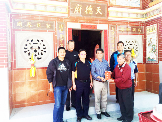農曆八月二十四、二十五日金湖鎮新塘天德府「鯉府將軍聖誕千秋」暨眾正神誕辰,村民援例舉行平安福醮慶典活動,金湖鎮長陳文顧日昨在醮慶第二天率領公所秘書、課室主管及同仁,在廟方人員引導下,虔誠上香祝禱,並致贈爐敬金祈求鄉里祥和安寧,家戶平安,受到境內長老及里長謝慶閣熱烈歡迎。 金湖鎮公所指出,新塘是位在柏村國小東北側的一個小村落,沒有幾戶人家,在戰地管制時期,村郊的新塘靶場是駐軍的訓練場所。每天從溪邊方向進出料羅港區的車輛,都會從村落外的公路上急馳而過。 新塘的人口雖少,但天德府卻建得美輪美奐,該廟是一座年代較近的廟宇,主奉鯉府千歲、海王府千歲、陸府千歲、保生大帝、蘇府王爺,早年神尊供奉於民宅,八十年代才興建成天德府,陪祀下壇爺,眾神護境,神靈人和,合境安詳。廟的右側就是清代金門籍書法家呂世宜的故居,堂前懸掛的「文魁」匾至今依然保存完好。 配合眾正神誕辰,新塘地方長老及鄉親連續設醮二日,各家戶統一於家門口設香案備順盒獻香敬拜,附近鄉里信眾也扶老攜幼前來燒香拜拜、添緣祝禱,祈福庇佑。答謝神恩之外,村民也祝禱鯉府千歲等眾神聖誕千秋,在鑼鼓喧天的熱鬧氛圍中,鯉府千歲神橋遶境出巡,配祀神祇也共襄盛舉一齊遶境,神尊出巡鎮五方的威儀,把平日寂靜的小小村落,渲染得熱鬧非凡。