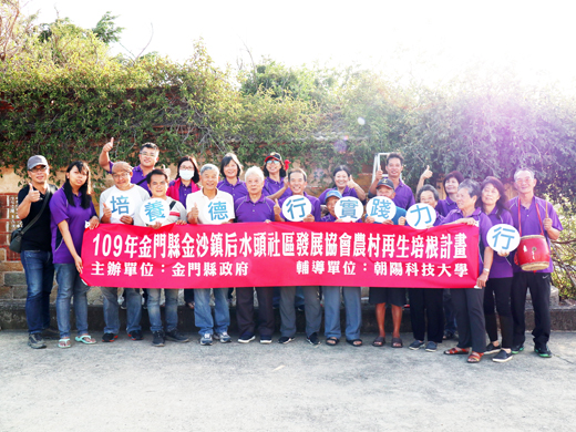 在縣府與鄉鎮公所的努力下,金沙鎮后水頭社區加入了農再培根行列,社區居民藉由農暇工餘時間,參加專業講師「農村再生培根計畫」課程,也藉由訓練在地人力,規劃出社區未來發展願景。 縣府建設處說明,農村再生是以「生活、生產、生態」的概念為出發點,配合社區文化,發展出屬於自身的社區特色。金門地區於99年間有部分社區參與水保局之農村再生培根計畫,但後續沉寂了數年未再更進一步延續,縣府106年時因莫蘭蒂颱風殘木處理與水保局再度結緣,開啟了農村再生的推廣合作。 水保局及金門縣政府輔導農村再生輔導,10月9日特別邀請朝陽科技大學專業講師,協助后水頭社區住民自選農村美學、農村社區產業活化、農村社區產業特色發覺等課程,精心策劃的教學內容不僅讓社區居民受益良多,也為金門農村再生開啟新章,同時發展出閩南建築與戰地文化兼具的社區風貌。 據鄉老指出,后水頭社區位於金門東半島,明朝開基稱為「文水」,清朝後改稱為「文水頭」或「汶水頭」,今經更名為后水頭。社區文風鼎盛,明清進士共3人,文武舉人9人,貢生約18人。 曾經在108年縣政府社區評鑑奪得單項特色獎的后水頭社區,擁有深厚的人文底蘊,更有饒富傳統韻味的歷史;古樸溫潤的閩南古厝,以及渾然天成的山光水景,這一方好山好水也孕育了新鮮健康的各種在地農產品。 本次農再培根課程,朝陽科大講師除了融入社區農產品開發講授,也教導社區醬油及味噌加工,利用在地高粱作為植物染製造方巾與揹袋;其中有些課程更納人社區閩南建築及戰地精神標語保存在地文化元素,期待在農村再生資源的輔導下,讓社區風華再現,同時帶動農村產業發展,促進地方繁榮。