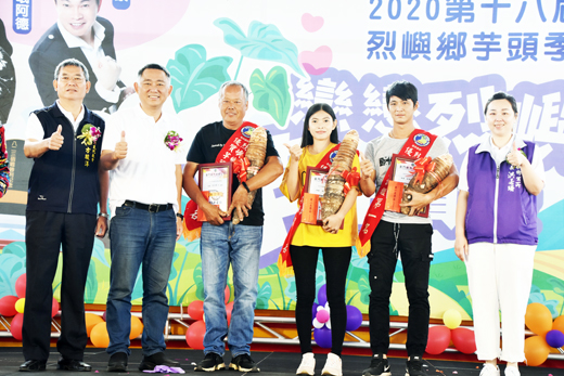 2020烈嶼鄉芋頭季的芋頭王大賽評比結果,由洪翊翔奪得「芋頭王」。洪文尊獲「芋二爺」。洪志華獲「芋三爺」,獲縣長楊鎮浯和鄉長洪若珊、鄉代會主席方駿洋頒發獎金獎勵。 鄉公所援往例配合芋頭季辦理芋頭王比賽,從芋農提供的參賽芋頭,進行評選,不僅要比單顆重量,芋頭外觀表面平整度、形狀及病蟲害情況也納入計分,還有注重芋頭栽種的安全。選出前三名以及十位優等芋農的芋頭。 鄉公所表示,「芋頭王」:洪翊翔,獲獎狀及獎金新台幣10,000元。「芋二爺」:洪文尊,獲獎狀及獎金新台幣8,000元。「芋三爺」:洪志華,獲獎狀及獎金新台幣6,000元。優等獎:10名,呂皆得、陳寶珍、洪瑞隆、洪天棍、楊振仁、洪瑞興、洪國山、洪天成、洪有利、蔡志源,獎勵現金禮券價值新台幣1,500元。前三名的農友或家屬代表開心領獎。 很多民眾參觀芋頭王展示區,拿起碩大芋頭拍照留念,分享芋農辛勤照顧的果實。