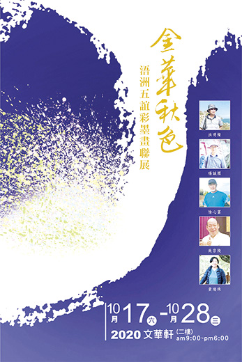 來自金門,曾經先後赴杭州「中國美術學院」學習進修的先後期同學好友洪明燦、楊誠國、徐心富、吳宗陵、黃瑞珠等五人,在金門縣文化局的支持下,受邀到臺北國父紀念館舉辦「金華秋色 浯洲五誼彩墨展」,展期自十月十七日至十月二十八日,地點在國父紀念館二樓文華軒,歡迎鄉親踴躍前往欣賞。 去年,同樣是金門畫家成立的「驅山走海」畫會成員包含:李苡甄、唐敏達、翁清土、洪明燦、洪永善、楊天澤、洪明標、張國英、陳秀娟、顏國榮、董皓雲、蔡儒君等12位,也曾來到「國父紀念館」作聯展,縣長楊鎮浯和文化局長許正芳都親自前往參與開幕酒會。 楊縣長並鼓勵縣籍藝術家勇敢走出島鄉,落實城鄉交流;國父紀念館梁永斐館長也歡迎金門縣文化局帶著金門當地藝術家們走進國館辦展,未來將持續加強館際交流,真正的體現文化平權,讓各縣市的藝術文化得以均衡發展。 今年參與聯展的五位同學友好,分別為2010年前往杭州美院學習的洪明燦,和2016年一起前往學習的楊誠國、徐心富、吳宗陵、黃瑞珠等四位。 洪明燦,早年自臺南師專畢業後,返金任教國小直到退休,在校因教導學生美術,因而產生對藝術的熱愛和執著,而於退休後毅然決然繼續尋求藝術學校前往學習;在透過朋友的引介,於2010年考上杭州(中國美院)高級研究班研習山水畫。洪老師善書法,歷任過「金門書法學會」理事長。 而後影響同樣對藝術有心向學的楊誠國,楊誠國找來同好好友徐心富和吳宗陵、黃瑞珠,四人偕伴前往杭州,於2016年同時考上(中國美術學院)(楊、徐二人上山水班,吳、黃二人為花鳥班)。 楊誠國一生服務公職,早年因同學好友徐心富贈送畫具和畫稿,開始習畫水墨國畫,而深深酷愛,揮之不去,念念不忘想有朝一日真正投入藝門科班學習。他曾任「金門美術學會」理事長兩屆,純為推廣和服務地方藝術,也因之為求能更深入藝術,前往杭州再深造。 徐心富係復興崗政戰學校藝術糸,畢業後下部隊,前十年於基層連隊服役,後十年則於藝工演出單位工作,二十年,均謹守工作職務本分,負責認真不敢怠惰,因而疏遠繪畫本能,漸行漸遠!退役下來,前往杭州學習;一來偕伴與朋友前行旅遊心態,二來增進見學及結交朋友。 吳宗陵,原就讀「東方工專」設計糸,出社會多方歷練,社會見識廣博,而會選擇走上藝文學術途徑,令人意外。他曾赴北京師範大學書法碩士班進修(現任﹝金門書法學會﹞理事長)。目前他仍孜孜不倦在大學攻讀博士學位。 黃瑞珠,之前跟張克齊老師學習工筆花鳥畫,作品已然非常精彩,彩墨寫實功底甚佳,此番前往純粹只為拓展自己筆墨境界,學習水墨。「浯洲」是昔日金門古稱。浯洲五誼,五位同好同學好友,都是金門同鄉。同鄉同好同學一起受邀來到臺北首善之地,「國父紀念館」聯合舉辦畫展,事屬難得。因此大夥都慎重其事,除了各施所長,把自己近年佳作,想一舉呈現眾人眼前。