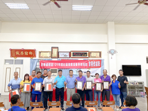 為落實社區發展工作之推行,金寧鄉公所召開109年度第三次社區發展協會幹部座談會,邀請金寧鄉十八個社區協會理事長、總幹事等人出席,針對金寧鄉社區未來發展進行討論,提供建言。金寧鄉長楊忠俊頒發參加銀膠菊移除工作績優社區獎牌和獎金,期許其它社區引以為學習的榜樣,希望各社區幹部投入更多心力,讓各社區發展協會動起來,以行動來活絡社區發展,一起建設金寧鄉。 金寧鄉公所辦理這項幹部座談會日昨於昔果山社區活動中心舉行,由鄉長楊忠俊主持,金寧鄉轄區十八個社區發展協會的理事長、總幹事共聚一堂,彼此交流業務經驗,而金寧鄉民代表會主席莊振源及代表李琳瑯、翁明惠、鍾尚志、黃文欣、陳秀金、陳孝融和主秘蔡世舜、秘書王四川與各村長、公所課長均出席聽取建言。 楊忠俊首先頒發金寧鄉109年金門地區鼓勵社區參加外來種(銀膠菊)移出工作環境及美化績優社區獎牌和獎金,分別是獲優等獎的古寧頭社區發展協會(獎金三萬元)、甲等獎的西堡社區(獎金二萬元)、獲得優勝的湖峰、安岐、湖南、東洲、昔果山、中東堡社區(獎金五千元)及獎牌各乙面。 楊忠俊感謝各社區發展協會協助鄉務工作,未來各社區將以參訪互動方式來交流,讓社區凝聚起來逐漸上軌道。他指出,社區發展協會的理事長、總幹事和理監事幹部,都是推動社區發展工作的重要人物,也是激發居民關心家園的動力,平日熱忱服務,引領社區居民參與各項公共事務。因此希望透過例行召開的社區幹部座談會,各社區彼此的交流、相互扶持,鼓勵居民參與社區發展協會會務,一起來為地方發展的未來思索、獻策,同時提供鄉公所、縣府參酌。 座談會也進行業務報告,由承辦課長李煜翔報告上次會議決議事項辦理情形,年度推動社區業務執行成效及輔導協會推動工作推展需要強化策進方向提示,同時進行各項業務推動與宣導。 會中各社區理事長、總幹事也提出多項提議,對於社區發展協會提出的意見,楊忠俊相當重視,由承辦課室當場做出回應,他並鼓勵各社區發展協會動起來,以行動來活絡社區發展及建設金寧鄉。