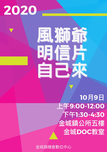 金城數位中心免費課程又來了!即將於十月九日開課,教大家自己製作明信片,歡迎有興趣民眾趕緊報名,名額有限,以免向隅! 風獅爺是「金門的守護神!」金城數位中心將於九日開課,就是以風獅爺做為製作明信片的主題課程,具有鄉土和民俗信仰文化,透過自己動手作,製出一張別具一格的風獅爺明信片,寄給遠方的親朋友好,給予特別的祝福心意。 金城數位中心即將開辦的風獅爺明信片製作課程,係是完成免費的,上課時間九日上午九時至十二時,下午一時三十分至四時三十分,假金城鎮公所五樓電腦教室上課,名額有限,歡迎有興趣民眾參加,報名電話:0921-588-216、連絡人林小姐。 金城數位中心表示,明信片雖僅是一張紙卡,透過教學製作,自己動手作一張風獅爺明信片;學會製作後,以後也可以在家自己設計製作,畫上自己喜歡的圖案,或是自己拍的照片圖,以及手寫寫上祝福的話,更加具有創意和珍貴的意義,歡迎趕緊報名參加。