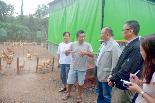 中央畜產會董事長林聰賢昨日率員來金和金門畜牧業者座談,並實地前往上后垵奇雞農場參觀業者林民地、李文彬合力飼養純種金門土雞、金皇土雞。林聰賢鼓勵業者提出經營計畫,中央畜產會會協助技術、產銷履歷的驗證和行銷等工作,使有機畜產品能獲得消費大眾之信賴。 前農委會主委、現任中央畜產會董事長林聰賢,昨日帶領高級專員黃貞綾、家禽組組長龔榮太一行,在金門縣小英之友會會長蔡其雍的陪同下來金展開兩天訪視行程。 金門畜牧產業座談會,林聰賢聽取縣議員蔡水游、議員李養生、金門縣政府建設處處長文水成、科長樊德正、畜試所課長辛園茂、張之維和畜牧業者的意見。林聰賢表示會盡力來提供協助。 林聰賢一行也專程前往上后垵參觀奇雞農場,受到業者林民地夫婦和李文彬的歡迎。 李文彬引領參觀雞場,說明目前飼養的雞隻約2000隻,採用自然放養、有機餵養的型態來經營雞舍,搭配金門特有的高粱酒糟,培育出最佳肉質的土雞。 林聰賢提供很多專業意見,並指出溯源管理、畜牧業者與消費者直接連結等趨勢,中央畜產會可以提供技術輔導和行銷工作。 林聰賢也強調,取得產銷履歷和驗證是非常重要,讓消費者可以選擇友善生產的畜產品。 林民地夫婦和李文彬感謝林聰賢一行的指導,也感謝縣府、畜試所、防疫所的輔導,希望養出的健康土雞,能打開市場通路,成為金門除了高粱酒、高粱牛肉乾等特產外,另一項金門高粱土雞的優質品牌。