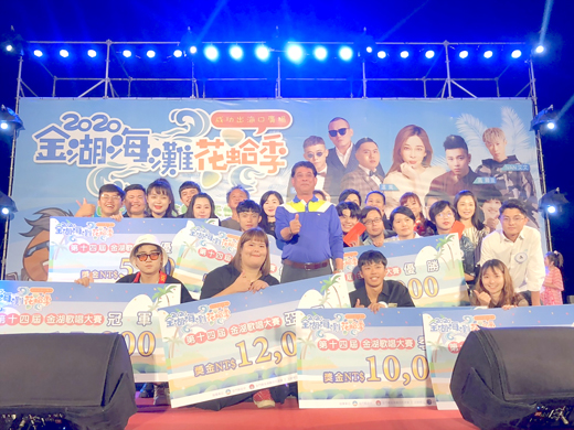金湖海灘花蛤季「第14屆歌唱大賽」昨(3)日晚間舉行,最終由2018年花蛤季歌唱大賽的冠軍高暐哲,以一首陳彥允的「大皇帝」再度拿下冠軍,抱回獎金1萬5000元。 花蛤季系列活動「第14屆歌唱大賽」昨日晚間舉行,15位日前預賽晉級決賽的選手同台較勁,包括駱毅華、梁穎臻、江庭瑋、邱吉爾、王鴻偉、李姍樺、鄭立恆、張鈺邦、許韻萍、黃偉齊、高暐哲、王芊文、吳品萱、吳秀俊、李依蕎(依昨日演唱順序)。 昨晚比賽精采激烈,高暐哲一身嘻哈裝扮,演唱陳彥允的「大皇帝」,令人驚艷,拿下第一名,抱回冠軍獎金1萬5000元。高暐哲是歌唱比賽常勝軍,2018年的花蛤季「第12屆歌唱大賽」,當時他演唱李袁傑的「離人愁」,同樣抱回冠軍,如今再度拿下冠軍,實力堅強。第二名李依蕎演唱「有一種悲傷」,獲得1萬2000元;第三名吳秀俊演唱「易燃易爆炸」,獲得1萬元;第四名王芊文演唱「我愛他」,獲得8000元;優勝四名包括許韻萍演唱「酒後的心聲」、張鈺邦演唱「那些你很冒險的夢」、李姍樺演唱「默」、邱吉爾演唱「過渡期」,各獲得5000元。其餘選手獲參加獎。