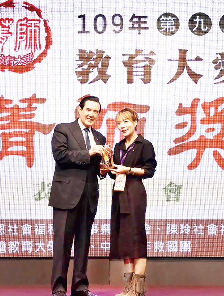 寧中小林靜儀獲大愛菁師獎 馬英九頒獎表揚