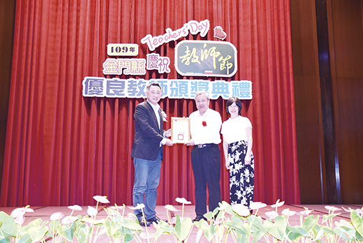 有「民間師鐸獎」之稱的教育大愛菁師獎日昨頒獎,金寧中小學林靜儀組長榮獲109年第九屆教育大愛菁師獎赴台受獎,由前總統馬英九頒獎表揚,學校師生也張貼海報祝賀,分享榮耀。寧中小之光!金門之光! 教育大愛菁師獎自2012年開辦,旨在勉勵教師發揮教育大愛精神,表揚其關懷弱勢學生努力克服困境,協助低收入戶學生成長學習,輔導學生偏差行為矯正,鼓舞學生挫折奮起有成並以發揚尊師重道優良傳統,提振我國訓育教育工作者之專業精神,充分表現教師傳道、授業、解惑成人之美的具體成果,鼓勵致力於提升青少年德育及群育之推展、導引同學從事正當社團活動、促進學生課業與課外活動之平衡發展有顯著成效或貢獻,深受師生及社會家長所共同肯定之典範教師。 「109年第九屆教育大愛菁師獎」,今年全國各界推薦共390位教師,經由嚴格的初審、複審、決審,共選出高中、國中、國小、幼兒園、特教組,合計63位接受表揚。金門縣推薦16位教育人員,榮獲推薦者視同得獎,將在今年團慶擴大辦理表揚,頒發獎狀暨獎品。金門縣獲選兩位,分別是國立金門高級中學楊國良主任教官、縣立金寧國民中小學國小部研發組長林靜儀老師。 林靜儀老師獲獎具體事蹟:全心投入做好一件事-帶班10年期間,藉由不斷的觀摩教學、教案設計和班級經營等實務經驗,體悟教室裡,一個教師不僅是教學者,更是孩子的生活導師;教學部分提供鷹架可以精熟學習,透過合作學習與導生制,可以讓孩子互相學習交流,增加情義及弭平雙峰現象。注意學習類型及多元智慧,搭配講述法、產婆法、角色扮演等,希望藉由學習金字塔的啟示,讓孩子從小組、實作、問題導向的學習目標中,動手做加強印象,增進學習成效,達到有意義的學習,帶得走的能力。 持續活動的力量-只要做深、做久,一件事看似平凡,也能發揮影響力。七年來,從校內走到校外展演,從金門飛到台灣參賽,從台灣到友好國家的邀請交流,不斷傳承與創新的思維,讓第一所全國太鼓特色課程的學校,學校人手一雙棒,太鼓課程融入各領域發展,也獲得教育部民俗體育學校扎根學校認證的殊榮,相信堅持得越久,持續得越久,影響力就會越大。 三贏局面-持續推動太鼓課程,尋找更多的可能,兩年後,再接下熱舞社團指導老師,孩子們從藝文活動中,找到自我存在價值,幫助建立自律的計畫表,服膺校旨:健康成長、追求卓越。堅持把鼓舞團隊帶好、陪滿,自己的教育理想得以實現,是目前教書過程中獲得最大的收穫。 共好的彼此-帶著學校鼓舞社的成功經驗繼續傳承與創新,將傳承傳統民俗技藝視為己任,陪伴與榜樣的生命感動生命歷程,期許帶領下一代的孩子們創新傳統文化。陪伴是一輩子的事,一個人走可以快,一群人一起走可以走得遠,相信教育工作是幸福的標記,也是自我的實現;教學是心靈的交會,也是人性的光輝。無論發生什麼事情,都當成學習的素材;無論遇到什麼困難,都當成挑戰的機會,是我的人生新領悟。 林老師感動致謝說,感佩在教育路上一路提攜的陳校長、王主任、寧中小教育夥伴們成之不在自己的大愛、讓我能代表大家上台領取這份榮耀、感動擁有這份榮耀時,是7年走來的孩子們、專業教練們、家長們無條件配合與支持、感恩有此成就是貴人們一次次的拉拔、鼓勵、更感謝金門縣團委會前總幹事徐國華、現任總幹事李立行的抬愛、提攜。