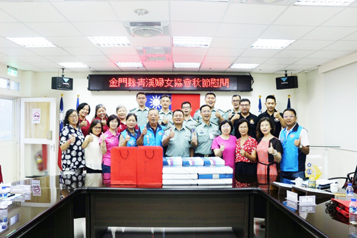 秋節前夕,南部地區後備指揮部金門委顧團副團長許玉昭縣議員、青溪婦女會理事長洪麗治日昨帶領婦聯青溪各鄉鎮支分會幹部,前往金門縣後備服務中心慰勞全體官士兵,贈送秋節應景禮品提前賀節。許玉昭指出,後備服務中心一年來協助地方防(救)災等工作,也提供後備袍澤的服務,婦聯、青溪姊妹帶來關懷,感謝付出與辛勞。青溪婦女會也感謝後備服務中心積極協助婦聯、青溪的活動,充分展現軍民同心之精神。 中秋節,是一個月圓人團圓的日子!國軍官兵不能返家團聚和家人共度佳節,南部地區後備指揮部金門委顧團團長陳昆第、南部地區後備指揮部金門委顧團副團長許玉昭縣議員及金門婦聯會、青溪姐妺前往金門縣後備服務中心勞軍,提前向後服中心所有官兵祝賀佳節。 許玉昭指出,金門縣後備服務中心官兵肩負金門的後備軍人管理、服務、動員召集、留守業務、人才招募及協助防(救)災等工作,也提供後備袍澤的服務,包括,急難慰助協助轉介等服務,並和金門縣政府、鄉鎮公所及社團互動良好,深獲好評。並表示,後備服務中心有一半的官兵同仁是獨自在外島服務的,雖不能夠時常和家人們團聚,但至少要讓每一位官兵弟兄在營區裡面,亦能感受到如同家的感覺。 後備服務中心主任許澤鑫稱讚金門婦聯、青溪凝聚力強,是優秀的婦女團體,婦女姐妹熱心社會公益活動,更令他感佩。許澤鑫說,婦聯、青溪團隊一直以來很支持後備大家庭,每逢佳節便主動前來慰問,溫暖了官兵,讓官兵弟兄姊妹們感受至深,深刻體會協會高度的服務熱忱,同時亦期盼未來協會能秉持「軍民一心」的精神,繼續給國軍鼓勵與掌聲。