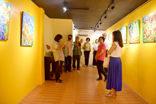 澎湖畫家鄭美珠「浯州與菊島的心緣」,9月20日起至10月25日止,假金城鎮「我在二手書店」地下室「我在藝廊」展出,歡迎蒞臨指導。 20日下午,鄭美珠的油畫展於我在二手書店舉行開幕茶會,教育處副處長黃雅芬及在地的藝文界友人為其跨海展出到場支持。鄭美珠並當場導覽此次展出的畫作,說明畫作中貫穿澎湖、金門兩地的共通元素,用畫作和金門的鄉親結緣。 鄭美珠指出,原獲邀在二至三月間來金辦展,因新冠病毒疫情延遲至九月才成行,此行輾轉搭機先往高雄再到金門,可謂一波三折。她和金門這地方有些淵源,包括協助她辦理此次展覽的朋友,是從澎湖移居到金門的,以及住在金門,已有二十年沒見的阿姨。此次畫展主題「浯州與菊島的心緣」,呈現的是故鄉澎湖,以及展覽地金門的一些元素,畫作中有著閩式老厝、風獅爺,以及金門隨處可見的大黃牛,那讓她踏進繪畫世界的偶蹄動物。 鄭美珠說,探究澎湖與金門的關係,澎湖的祖先有六成來自金門,所以神祖牌上寫著遷澎祖來自於「浯」。澎湖原先也有不少的風獅爺與雕刻細緻的石敢當,但是隨著時代的更迭,現存者僅剩下銘刻「石敢當」三字的石碑。為了此次畫展,鄭美珠畫了幾尊金門代表性的風獅爺,如:后水頭(汶源宮)、瓊林、湖下、歐厝、泗湖的風獅爺,將風獅爺的樸拙形貌與陽光、花卉、閩南厝並置在同一畫面中。因為風獅爺作為人藉以和天地溝通的媒介,是作為鎮風止煞的圖騰,因此周遭畫著同心圓。鄭美珠也提到,澎湖以鎮風塔取代風獅爺,在地方上發揮著同樣的作用。 畫作中頻繁出現天人菊這一花卉,鄭美珠表示,該種花卉有著陽光愈熾熱開得越鮮豔的特性,花種有著強韌的生命力,在澎湖被大量栽植。天人菊也是澎湖縣的縣花、美國奧克拉荷馬州的州花。或許是將之和自身相比,同樣是不畏環境的艱苦,畫作中的天人菊開得欣欣向榮。另外,她也把金門縣的縣花四季蘭用解構的方式呈現在畫作中,化成幾何圖形的四季蘭,與周遭如玄武岩節理般的圓圈交相輝映。 鄭美珠,台灣澎湖人,畫家、藝術創作者。大葉大學設計暨藝術學院碩士、大同大學設計科學研究所博士候選人。曾於台北國父紀念館、中正紀念堂、澎湖縣文化局、佛光緣美術館等地多次舉辦個人畫展。任澎湖縣國際藝術交流協會理事長、澎湖縣美術協會理事長、澎湖縣藝術聯盟協會理事長、澎湖縣社區大學兼任講師。