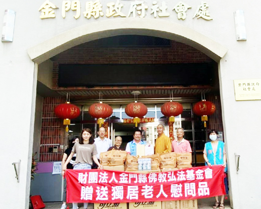中秋佳節將至,金門縣太武山海印寺暨財團法人金門縣佛教弘法基金會為表達對本縣獨居長者關懷之意,昨(16)日由董事長性海法師帶領真化師父、楊清國、王漢文等董監事及志工,將備妥的221份秋節關懷禮盒,委由金門縣政府社會處轉送全縣獨居長者,由社會處長董燊代表受贈,董燊並回贈金門縣政府感謝狀,肯定金門縣佛教弘法基金會的善行義舉。 另對於金門縣佛教弘法基金會長年以實際行動關懷本縣獨居長者,他也代表楊鎮浯縣長表示謝意,也希望透過本次捐贈拋磚引玉,鼓勵大眾一同關注社會公益,協助更多弱勢群體。 此外,金門縣政府社會處長青及綜合志工隊,9月19日將攜手五鄉鎮公所綜合福利志工隊,同步辦理秋節慰問活動,由各公所志工及社會處長青志工隊前往轄區內獨居長者家中訪視,就其居住場所作環境清潔打掃、關懷問安,並轉發金門縣佛教弘法基金會慰問品。社會處綜合志工隊也將前往金門縣福田家園辦理關懷訪視,提前向鄉親慶賀中秋佳節。