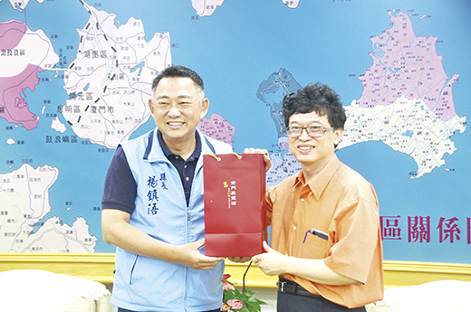 科技部政務次長謝達斌,昨日率同相關人員來金,為金門導入自駕車開展把脈,並拜會金門縣長楊鎮浯。楊縣長希望透過科技部專業的指導,讓在美國已愈來愈多人開自駕車上路,未來有機會在金門開展。 縣長楊鎮浯強調,金門因人居環境,導入自駕車最重要的是安全,因此,希望透過科技部等專業幫忙,克服一些東西,讓自駕車有機會在金門實質開展。 謝達斌表示,導入自駕車就要接地氣,行人安全很重要,因此,行車到人員和大地資訊等數據,都相對重要。而金門大橋未來通車後,相關系統資訊和5G通訊介面連接,縣府都可以提前來考量規劃。 縣長楊鎮浯指出,金門大橋預定明年底完工,在小金門要打造成低碳島為既定目標,居民仍以使用傳統載具為大宗,因此,實際執行上有阻力,但更盼望更先進科技的導入。 昨日在場參與的,還有縣府行政處長陳祥麟、工務處副處長黃儒新、觀光處副處長許績鑫、金門縣環保局局長楊建立等人。