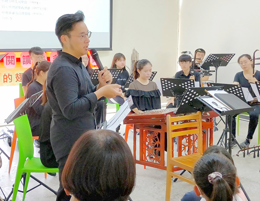 為推廣閱讀、強化鄉鎮圖書館功能,金沙鎮公所圖書館8月起至11月推出《金門閱讀島系列活動》。其中,「乘著音樂的翅膀,享受閱讀的樂趣」一系列國樂分享活動總計4場,指揮周聖文在首場活動中帶領金門愛樂民族管弦樂團現場演奏,並進行曲目之解說和賞析,讓與會民眾領略國樂之美。金沙圖書館表示,金門閱讀島系列活動及其他場次國樂分享會,歡迎民眾共襄盛舉。 金沙鎮圖書館5月起辦理「分享好書送獎金」活動徵件,7月陸續邀請小小說書人到圖書館分享好書。八月適逢父親節,金沙鎮圖書館也規劃「吹夢巨人」說故事活動,邀請故事達人到場述說關於爸爸的故事。而8月起在金門文化局縣立圖書館協力下合辦《金門閱讀島系列活動》,為期至11月底,共規劃13場閱讀活動。其中,「乘著音樂的翅膀,享受閱讀的樂趣」系列國樂分享活動,共計4場次,首場已於8月29日登場,鎮長吳有家、金門縣國樂協會理事長石兆瑉、金門縣國樂協會行政總監涂凱津以及許多愛樂的民眾齊聚一堂,參與欣賞精湛的國樂演奏和分享。 在金湖國小及金湖國中國樂團指揮周聖文帶領下,金門愛樂民族管弦樂團現場演奏,有別於一般正式演出,穿插解說的方式,介紹多首中國流行歌曲及經典曲目,包括,大家耳熟能詳的節慶音樂《金蛇狂舞》,以及《草螟弄雞公》,《光明進行曲》、《二泉映月》、《月兒高》等國樂名曲,帶領讀者、觀眾進入國樂殿堂,認識傳統樂器、演奏形式、表現方式和樂曲之呈現。 會中,為了讓與會大小朋友對國樂有更深的認識,指揮周聖文特別在演出前介紹國樂樂器,團員實際展示每種樂器的形狀和聲音,之後完整演出每一首曲目,呈現了國樂剛柔並濟的樂器特性,可以說是解說與音樂時間一比一的方式。而他也特別指出,許多人都會好奇,在國樂團中何以西洋樂器低音大提琴會出現?乃是因為,國樂的弦樂器都是蒙了蛇皮,低音樂器音箱大,成本太高,也太殘忍,於是向西洋樂器中借將,低音大提琴的音色和國樂樂器毫不違和,效果很好。 而整場國樂分享會在指揮周聖文穿針引線下,以及樂團堅實和專業的演出,深入淺出,帶領現場五十餘位民眾領略國樂之美,優美、引人入勝的樂音和活動形式,讓大小朋友都聽得趣味盎然,共度美好的國樂時光。 金沙鎮鎮長吳有家表示,金門國樂團耕耘地方二十載,培養出許多的優秀音樂人才,包括金門愛樂民族管弦樂團成員等。感謝金門縣國樂協會理事長石兆瑉、金門縣國樂協會行政總監涂凱津全程參與活動,指揮周聖文奉獻在音樂上的專業,大家匯聚在金沙圖書館,在音樂賞析和閱讀中豐富學習視野。 金沙鎮圖書館表示,「乘著音樂的翅膀,享受閱讀的樂趣」一系列國樂分享活動,後續還有3場次,時間分別為,9月20日、10月25日、11月15日三場,歡迎報名參與,報名網址為:https://forms.gle/aCwWW1aTrR2zVcX1。
