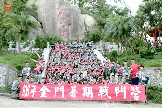 金門暑期戰鬥營開跑!每年暑假都會舉辦的金門暑期戰鬥營,今(106)年第1梯次在3日起跑,為期5天4夜,將安排100位學員參加戰地歷史回顧、實彈射擊、兩棲營基本戰鬥教練、重要景點介紹等。有學員因為父親過去在金門服役,因此報名參加金戰營,實際體驗父親的人生故事,也有學員因為姊姊在金門當兵,所以想來金門與姊姊會面。 金防部承辦金門暑期戰鬥營活動,首梯100名學員,包括53名女同學、及47名男同學,3日上午由空軍松山基地搭乘C130運輸機飛抵金門,也正式宣告活動展開。 金防部表示,今年舉辦的金門戰鬥營活動,如同往年大受青年學子歡迎。為了讓同學們能夠充分體驗金門特殊的戰鬥文化,5天4夜的課程安排,包括戰地歷史回顧、實彈射擊、兩棲營基本戰鬥教練、重要景點介紹等等,知性與人文兼具,是一場最具意義的歷史回顧與愛國教育。對於年輕的學員們而言,也能夠有機會思考、體認上個世代的經歷,在比較他所習慣的安定日常之後,能夠有新的體悟與反思。 來自苗栗縣三義高中的許智晴說,她和哥哥從小就熱衷參加各式野外營隊,尤其哥哥對軍事相當有興趣,今年也已經在關西加入志願役的行列;而她礙於年齡限制,等到今年終於可以報名國軍的戰鬥體驗營,覺得非常興奮,而且毫不猶豫地選擇了金戰營,相信一定會有難忘的人生體驗。來自慈惠醫專的陳慧瑜,這次和就讀東港高中的弟弟陳學成,一起報名並錄取金門暑期戰鬥營,特別感到興奮,因為還有一位姊姊,同時也在金門守備大隊擔任預財士,姊弟三人同時在金門短暫聚首,分外珍惜。 此外,中崙高中的李冠嶸,及振聲高中的莊鎧瑜兩位同學,都是因為父親過去在金門服役,從小就聽父親叨叨絮絮懷念20多年前服役期間的過往,因此報名參加金戰營,實際體驗父親的人生故事;另有2位女同學石千砡與田恩,則聽從仍為現役軍人父、母親的建議報名參加,對於能夠體驗不同的高中生活、學習獨立,覺得非常值得。幾位同學也都強烈表達願意再來參加的意願。 金防部表示,今年金門暑期戰鬥營計分為2梯次,每梯次錄取100名學員;第1梯次在7日結訓,第2梯次將在17日至21日辦理。