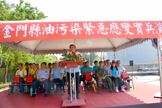 縣府昨日下午在台灣中油股份有限公司金馬行銷中心舉辦109年「金門縣油污染緊急應變」演練,模擬金馬行銷中心廠區內油污外洩至白龍溪,且恐擴大成海洋油污染事件,相關單位立即啟動通報、廠內緊急應變、白龍溪油污染攔截與回收及環境監控等應變處理,透過操演強化各應變單位對於油污染事件的「預防」、「通報」、「應變」及「善後復原」等應變意識,演練逼真、合作無間、過程順利。 昨日的演練由縣府秘書長陳朝金主持,海保署李筱霞專門委員及台灣中油高雄營業處劉天賜副處長、金湖鎮長陳文顧等人出席指導;演練共動員金門縣環保局、消防局、中油金馬行銷中心、海洋委員會海巡署金馬澎分署第九岸巡隊、海洋委員會海巡署艦隊分署第九海巡隊及金湖水環境巡守隊等6個公私單位參演。 演練假設的狀況係模擬金馬行銷中心廠區內儲油槽防溢堤外管漏油,油料已佈滿地面並流至水溝,油污更外洩至白龍溪,且恐擴大成海洋油污染事件,相關單位立即啟動通報、廠內緊急應變、白龍溪油污染攔截與回收及環境監控等應變處理,演練過程相當順利。 陳朝金秘書長致詞時表示,海洋油污染除海上船舶外洩造成,也可能是陸上油污溢流所致。因此,縣府為了因應不同海洋油污染模式,此次聯合中油,模擬該公司廠內管線油污溢流外洩至白龍溪,縣內油污染應變單位隨即啟動整合。現場除出動消防局至中油戒備,預防火災發生,廠區內、溪面及海上一系列的油污堵漏、攔油索佈置架設、油污清除及海域水質監控等快速應變作為,避免油污染的擴散,降低環境災害風險,是一次結合陸地、溪流及海洋的複合式油污染應變演練。 陳朝金指出,演練目的就是讓油污染應變單位,將平時備有的應變能量,以跨單位整合方式轉換為實際操作,並透過操演強化各應變單位對於油污染事件的「預防」、「通報」、「應變」及「善後復原」等應變意識,強化政府機關與相關應變單位處置判斷與聯合應變能力,並透過應變單位的相互支援,讓事件發生時,使環境污染及災害降到最低。 在演練後講評時陳朝金秘書長指出,大家平時多一分準備,萬一有況狀就可以減少一分損害,對於演練,他以「演練逼真、合作無間」嘉勉,並指出,此次演練中,萬一有狀況發生,橫向聯繫的單位、人員的定位,也是此次演練的重點,因為金門位屬離島,任何災害的發生,如何加強橫向合作及狀況發生時該從事的工作,金門離島獨立生根、獨力作戰,是過去一貫的傳統,期盼透過橫向的聯繫、跨域的合作,將災害減少到最低。 陳朝金勉勵各參演單位,透過演練,除了驗證平時儲備的能量及整合能力,也從中瞭解不足之處,進而改善;讓油污染意外事件發生時,能在有效且迅速的應變下,防止污染擴散及災害發生,才能真正守護美麗的家園環境及保護縣民的居家安全。 海洋保育署李筱霞專門委員指出,海保署有一擴散模擬系統與衛星遙測系統,可提供給金門縣運用,此次演練大家非常認真,但是演練當中應注意鞋子的防護,可增加鞋套保護,減少來往冷熱區的二次污染,廢棄物的分類要確實妥善的處理。水質檢測前中後的採樣模擬希望可以納入演練。 中油高雄營業處劉天賜副處長稱許演練非常成功,值得鼓勵,他說,雖然是模擬狀況,但是參演單位視同真實情況處置,展現平常訓練有素的成果。他也強調,中油公司在金門一定要努力做好工安、環保,零污染、零工安事故、零環保污染,讓鄉親沒有後顧之憂。 演練講評後,陳朝金也代表縣長楊鎮浯頒發感謝狀給各參演單位,感謝大家頂著大太陽揮汗參與演練,並和大家一起合照留念。