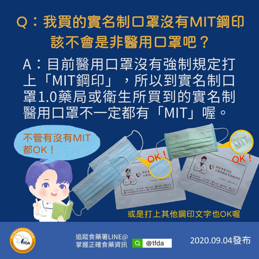 醫用口罩沒有強制規定打「MIT」鋼印
