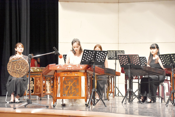 跨海來金門校園巡演的台灣揚琴樂團,4日晚間與開瑄國小揚琴社於文化局演藝廳一同登台演出,為悶熱的夏夜帶來清揚的好聲音。 以推廣揚琴為職志的台灣揚琴樂團,今年以「蝶音飛揚-聽見揚琴好聲音」為主題,第三度到金門巡迴演出。第一年來金推廣後促成了開瑄國小揚琴社的成立,今年五校巡演後,4日晚間在文化局演藝廳和開瑄揚琴社攜手演出。團長鐘泉波表示,希望藉著校園巡迴演出,讓更多人認識揚琴的音樂特色,使學童們知道揚琴還有以團隊共同演出這形式。 鐘泉波指出,107年首次來金校園巡迴推廣揚琴,在開瑄國小遇到了他在文化大學的學生許曉緣,在開瑄任職的許曉緣有意成立揚琴社,因此在其協助下添置了低、中、高音的揚琴,讓該項樂器的表演能夠成團。鐘團長表示,金門的國樂推展得很好,但是此前未有以揚琴這一樂器單獨成團演出的形式,開瑄國小成立揚琴社已二年,此次聯合演出也有著檢視推廣成果的意味在。以偏鄉的學校為主,他這幾年在全國巡迴推廣揚琴,金門的開瑄國小揚琴社是第一個扶植成功的。 開瑄國小成立揚琴社雖才二年,但學生在此項樂器的比賽中已取得佳績,日前由中華民國國樂協會舉辦的南區器樂大賽,該校四年級學生卓佳賞以87.24分的成績拿下第一名,同樣是四年級的許愛和獲得第六名的佳績。校長孫麗琪對獲獎學生的天賦與努力感到榮耀與欣慰。 與開瑄國小的聯合演出活動中,台灣揚琴樂團演出「春節序曲」、「栗祭蕃童路舞歌」、「歡樂的火把節」、「山鄉歡舞」,由許曉緣老師協奏「天山詩畫」,以及由開瑄國小揚琴社隊員演出「花好月圓」、「採茶歌」、「拍手歌」、「塔吉克舞曲」,美妙的樂聲讓聆聽的民眾沉醉在一首首的音樂裡。