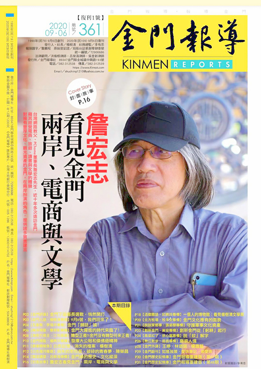 「9月6號,我們回來了!」,短短一句宣言,《金門報導》(見圖)回來了。《金門報導》復刊再出發茶會、記者會,明(9月6日)星期天下午3點,在金門縣商會(金城模範街1-1號)舉行,由金門商會理事長、《金門報導》社務總監李有忠及成大台文所博士候選人、《金門報導》出版部主編邱曉玲共同主持; 為讓世界看見、聽見金門,正進行金門、金門學、金門文學、《金門報導》相關專題研究的加拿大學者Dayton Neu雷岱騰也將以貴賓身分到場,與中美大學教育聯盟金門分校校長楊肅藝中英文朗誦《金門報導》復刊1號【金門外譯】專欄所刊王婷詩作、林道銘攝影、楊肅藝英譯的〈60年後〉。 戒嚴、軍管年代,嚴格控管言論,無法在金門登記、出版、發行刊物,《金門報導》只能在台灣登記,再「空投」、「海漂」回金門; 從創刊、斷刊到復刊,橫跨漫漫30年後時空的等待,《金門報導》終於可以回到金門重新登記、發刊,址設金城鎮中興路193號(電話082-312538,歡迎索閱、訂閱、贊助)。《金門報導》回家了,9月6日的茶會,特邀請鄉親、讀友、老友、老義工們,回到《金門報導》大家族共赴盛會再相挺、獻祝福。 《金門報導》走向新里程,正在金門文化局返鄉展的榜林書畫院院長徐心富特別畫了幅〈鷹揚〉的水墨,寫下一段〈從楊樹清文學展到《金門報導》再鷹揚〉的文字傳達祝福,「『以前是從政治看文化,現在是從文化看政治』,在Line《金門報導筆陣群》裡,我讀到PChome董事長詹宏志口中『一人抵一報、一人扺一社』的楊樹清所寫下再出發的『編輯理念』是吧,於是,我似乎預見了,一個不再那麼『政治』,而是那麼『文化』的《金門報導》新風景……。 」 2008年,金馬解嚴15周年,銘傳大學應用中文系李木隆完成《解嚴前『金門報導』對金門發展之分析》十萬多字碩士論文,觀察金門媒體現象後提出「《金門報導》在解嚴前,帶動金門輿論風潮,是金門比較有批判色彩的時代,印證媒體對一個社會轉型變遷的重要性。因此希望金門能夠再有一份《金門報導》精神的媒體出現,以督促地方的發展。」 以前從「政治」,現在從「文化」再出發的《金門報導》內容將更多元,發行人兼社長楊樹清強調,復現的《金門報導》不變的是「批判色彩,獨立評論」精神。 從「復刊1號,總號第361期」再出發的《金門報導》,初期規劃8開32版,全彩,每月6日固定出刊一期,再視需要彈性出刊,並逐步朝雙周報、周報、日報邁進。 楊樹清所規劃的《金門報導》發展願景,也是一個金門文化夢工廠的實現,紙版、網站是主力,也有出版社,線上節目、直播,漂木空間咖啡館,楊樹清文學館,金門學研究出版,《金門報導》重建版、金門歷史記憶庫等項目的推動、實踐; 網站走新聞、資訊、互動; 紙版走人物、專題、專欄。