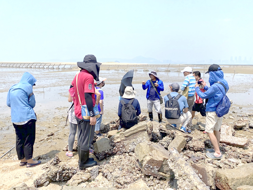 在暑假即將結束的八月下旬,本縣國民教育輔導團積極辦理全縣國中小教師共同備課,以因應即將到來的開學。而其中國中社會學習領域團本次結合海洋教育議題融入,辦理社會領域戶外踏查增能研習,強化教師對於本縣海洋環境議題之探究與理解,更在洪清漳的帶領下,觀察烈嶼潮間帶的奧妙與奇特之處。 本縣國民教育輔導團國中社會學習領域,本年度之暑期共備強調海洋教育議題的融入。特別商請金門潮間帶社團洪清漳老師與陳秀麗、蔡咸兩位助理解說員,帶領所有與會教師觀察潮間帶。戶外課程主題分別為海岸軍事遺跡與潮間帶觀察,室內課程則有金門潮間帶環境概論與潮間帶生物認識。 在觀察當中,洪老師提醒各位與會教師注意到金門潮間帶所在的地理環境,從地質地形下手,會認識到不同海岸段的成因,有助於理解潮間帶的特性。進入潮間帶,建議應做好相關準備與留意注意事項,以免對潮間帶產生不必要的干擾。觀察潮間帶要先從海洋生物的習性下手,方能在較準確的地點進行觀察,否則會容易形成走馬看花。例如觀察鱟,就要在泥灘地又有養蚵之處,方能準確觀察到。 另外,觀察生物之外,在海岸與海洋上看到的問題,也是每位教師可以帶領學生思考的重點,例如:海上養殖的廢棄保麗龍問題、石蚵殼廢棄物、出海口地形變化、灘地陸化、越界抽砂、越界捕魚、水泥化的海岸、防坡堤、消波塊、廢棄漁網、互花米草入侵等等,都是用來可以設計核心素養導向的海洋教育課程議題,透過這些議題的設定,採用跨領域協作方式,來進行探究設計與問題解決,這樣的海洋教育很適合在社會學習領域來進行與推動。 本次的潮間帶增能研習,參與的共計有國中小跨領域35位教師,眾人報名意願高,且與會教師大家都很認真的參與觀察,一起共同學習與討論,為金門海洋教育盡一份心力。 主辦單位金湖國中校長謝志偉感謝洪清漳老師的分享與帶領,表示所有學員都是收穫滿滿且意猶未盡,也謝謝上庫理事長吳建意支援社區活動中心的場地。謝校長向所有與會的教師表示慰勉,在炎炎夏日當中仍是充滿熱情地進行潮間帶觀察。 國教輔導團在各項議題的融入均提供增能機會,而本次社會學習領域則是以海洋教育為優先融入的議題,用意就是反映所有金門人的生活環境,就是海島環境,與海息息相關,瞭解金門海洋的問題,也就是關心我們生活環境的問題,進而一起透過教育的途徑,試圖找出解決的方案,這就是十二年國教新課綱所要求之核心素養的實踐。