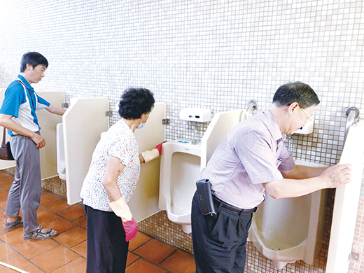 為迎接109學年度第一學期,古城國小全校教職員工、愛心志工社志工媽媽及中高年級學生攜手一起參與清掃廁所學習服務活動,期盼透過該活動,讓師生員工學會放下身段、磨練心志、謙卑學習、感恩惜福、體恤辛勞,並以環境為本之理念,完成最佳的自我修行。 古城國小為迎接109學年上學期,日昨舉行清掃廁所服務學習活動,全體教職員工及四五六年級學生與該校愛心志工社的志工媽媽大家攜手進行全校廁所清掃工作,徹底清掃校園內的廁所,使得廁所亮麗乾淨,整潔如新。古城國小表示,為響應金門縣環保局推動的「校園環境衛生推動計畫」,特別選在109新學年度上學期開學日前,與該校愛心志工社一起辦理這項別具教育意義的清掃廁所服務學習活動,讓師生員工及愛心志工從服務活動體驗中,學習懂得在如廁時為下一位使用者著想,以維持良好衛生的如廁環境。 古城國小校長楊成業在清掃廁所服務學習活動前,特別向師生分享「台灣美化協會」的源流與理念,並指出論起「清掃廁所」,不得不提及日本皇帽公司創辦人鍵山秀三郎,他認為清掃廁所是一種最佳的自我修行,可由一般人所厭惡的清掃廁所來磨練心志,學習謙卑與感恩惜福、體恤辛勞,以及落實凡事徹底的精神。