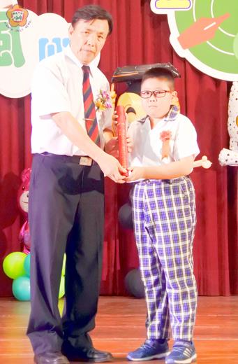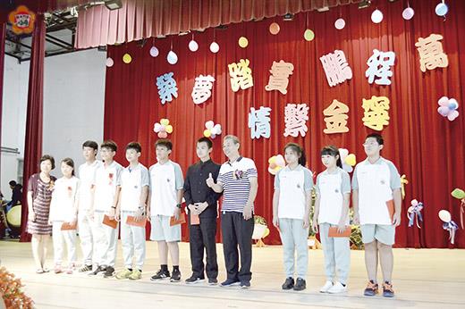 驪歌輕唱又到畢業季,中正國小昨日上午舉辦106級第72屆畢業典禮,歡送227位畢業生。在校師生、家長、與會貴賓一同獻上祝福,壓軸登場的薪火相傳也成為一項傳統,最後畢業生向師長獻花話別、做校園巡禮,在祝福聲中離開校門。校長張樾也勉畢業生追尋夢想、建立自信、勇敢面對未來的挑戰!送給畢業生。 中正國小106級第72屆畢業典禮,昨日上午八時三十分起在活動中心舉行,現場在「音符藝享曲」舞蹈表演下揭開序幕,副縣長吳成典、議員陳滄江、金城鎮鎮長石兆瑉、金城鎮代表會主席陳天成、金城鎮代表倪于媃、胡凱宇、金城國中校長許維民、古城國小校長楊成業、金城幼兒園園長許碧華、中正國小校友會理事長馬志亮、中正國小家長會會長于三多、榮譽會長許燕輝等貴賓到場,依序頒獎表揚136位獲獎學生,也祝福畢業生鵬程萬里。 昨日的畢業典禮由校長張栢樾主持,他頒發畢業證書給學子,由畢業生代表鄭子宸代表接受。張校長祝福畢業生,努力追尋夢想,並且對自己有信心,此外人生會有許多無法預料的挑戰,學生們要勇敢地面對。並頒發畢業證書給畢業生。 而中正國小畢業典禮除了場內人氣強強滾,家長師生擠滿會場向畢業生獻上祝福,畢業生薪火相傳給學弟妹,互勉謹記「勤誠」二字。而會場外也相當熱鬧,五年級學生進行園遊會,學子拉高嗓音兜售,將學校中庭走廊擠得水洩不通。最後,227位畢業生向師長獻花、語聊表心意,接著進行校園巡禮,在祝福中踏出校門,迎向人生另一階段學習旅程。