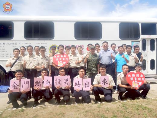 「捐血一袋‧救人一命」是大家耳熟能詳的口號,地區教育替代役男身體力行,將口號落實為行動,在教育部金門縣聯絡處的號召之下,近三十位替代役男們挽起袖子,捐出一袋袋熱血。 台北捐血中心再度來金門辦理捐血活動,日前在金湖士校路的金門幹訓班的國軍弟兄辦理,地區教育替代役男們也一起響應,在金門縣校外會以及教育處的共同號召之下,由金門縣校外會督導張智芳、教官孫孝義、劉穎德、宋洋孝等人的率領下,前往設在幹訓班的捐血車,來挽袖貢獻愛心。此外,金防部政戰主任史順文也前往加油打氣。 校外會表示,捐血活動極具意義,而且為了展現替代役役男熱心公益的情操,擴大服務層面,藉由與台北捐血中心辦理的捐血活動,期待地區的替代役役男們能以「分享健康、捐血救人」的精神,發揮熾熱的愛心,挽袖捐血,為血庫注入一股暖流。而捐血是相當利人利己的事情,不僅對於自身新陳代謝有所助益,捐輸出來的血液,也能用於救人的用途,是相當有正面意義的。