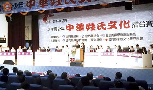 「2017兩岸青少年中華姓氏文化擂台賽」昨日假金門縣藝文中心舉辦,兩岸三地16支隊伍參賽,上午進行國小組、下午進行大學組,分別由廈門濱東小學及集美大學城毅學院獲得一等獎;另外「姓氏小故事作文比賽」則由廈門天安小學盧可涵及廈門理工學院靳紫微獲一等獎。副縣長吳成典在閉幕典禮中頒獎嘉勉績優團隊和個人,同時也頒發感謝狀給金門縣宗族文化研究協會等三個單位。 金門縣政府教育處在金門縣宗族文化研究協會協助下,辦理「2017兩岸青少年中華姓氏文化擂台賽」,比賽內容包含二階段競賽,第一階段為「姓氏小故事作文比賽」,於5月下旬展開,參賽選手撰寫文章送件,於第二階段「中華姓氏文化擂台賽」結束揭曉成績。而「中華姓氏文化擂台賽」昨日上午八時三十分起假金門縣藝文中心舉行,分小學組及大學組,內容採五輪式現場公開競技,參賽學生依序進行「姓氏小故事即席演講題競賽」、「姓氏知識個人必答題競賽」、「姓氏謎語搶答題競賽」、「姓氏知識團體必答題競賽」、「特殊姓氏讀音聽寫題競賽」等,不僅考驗選手的記憶力、對姓氏源流脈絡的瞭解也考驗臨場反應,而各校組成啦啦隊在台下加油吶喊,比賽相當緊張。最後由廈門濱東小學及集美大學城毅學院獲得擂台賽一等獎。 該活動於昨日晚間舉行閉幕頒獎,副縣長吳成典頒獎嘉勉績優團隊及個人,同時他也代表頒發感謝狀給金門縣宗族文化研究協會、廈門市姓氏源流研究會、台灣姓氏研究學會,感謝各單位對比賽的協助。 金門縣教育處指出,活動目的在發揚中華文化,加強兩岸青少年對中華宗族文化的認知,瞭解中華姓氏文化的形成和發展脈絡,也拓展青少年學生學習領域。另外,金門縣擁有豐富而完整的宗族文化知識和采風,透過活動讓兩岸專家學者及社團等對姓氏文化研究交流合作。更希望透過活動具體行銷金門的歷史與文化,增加金門曝光度,以文化發聲,讓兩岸及世界認識金門。 「2017兩岸青少年中華姓氏文化擂台賽」成績如后: 「姓氏小故事作文比賽」,小學組:一等獎,廈門天安小學盧可涵。二等獎廈門天安小學陳成安、廈門思明小學盧和。三等獎,廈門天安小學莊家如、廈門實驗小學王思涵、廈門濱東小學林欣宇。團體獎廈門天安小學。 大學組:一等獎,廈門理工學院靳紫微。二等獎,廈門集美大學蔡振峰、廈門大學吳昊。三等獎,集美大學誠毅學院王佳琳、廈門大學張涵、高雄海洋科技大學黃湘婷。團體獎廈門理工學院。 「中華姓氏文化擂台賽」,小學組;一等獎,廈門濱東小學。二等獎廈門思明小學、廈門實驗小學。三等獎,廈門天安小學、高雄福康國小、金門縣金湖國小、金門縣正義國小、高雄苓洲國小。