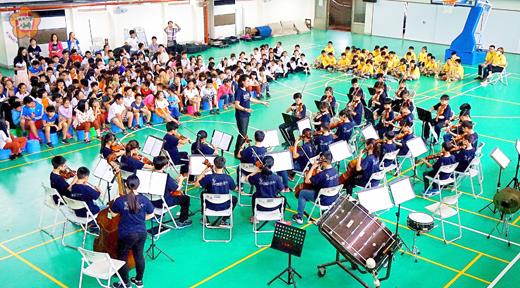 台北市碧湖國小弦樂團抵金展開三天兩夜交流參訪行程,期間造訪中正國小並與中正管樂團及弦樂團進行一場音樂交流演出,兩校以樂友會,學子共譜一場有別於以往的音樂饗宴,讓初夏的校園樂聲悠揚,並增進校際間情誼。 台北市碧湖國小弦樂團師生六十餘人,在校長藍惠美帶領下抵金,展開為期三天兩夜交流參訪行程,隨團成員還包括學務主任陳詩添、指揮李讚洋、樂團團務黃博鴻、學校團務吳佳芝等,並於五日到訪中正國小,雙方於活動中心進行交流音樂會。 會中,中正管樂團在指揮張震宇帶領下,演出天黑黑等三首曲目、接著由董皓雲引領的中正國小弦樂團登場表演STAR WARS MAIN THEME等樂曲。最後,碧湖國小弦樂團由李讚洋指揮下,演奏西班牙綺想曲等四首曲目。三團接連演出,以樂會友,曲曲動聽且精采,獲得眾人好評,也讓初夏的中正國小校園樂聲悠揚。 中正國小表示,碧湖國小弦樂團由李讚洋老師所指導,屢屢在全國學生音樂比賽中獲得佳績。105學年度甫得到全國音樂比賽弦樂合奏國小團體A組「特優獎」。此次抵金與中正國小管樂團、弦樂團交流演出,為兩校以樂會友,增進校際間的情誼,也為彼此帶來不同以往的音樂饗宴。 中正國小張校長木百樾表示,中正國小是縣內音樂發展重點學校,校內現有多個音樂性社團,長期為地區音樂教育投注心力,讓音樂學習向下扎根。同時也擔任縣內學校音樂交流大使的工作,希望藉以讓孩子有不一樣的視野,提升金門孩子音樂學習動機,達到以樂教培養審美能力、豐富生活內涵等目的。