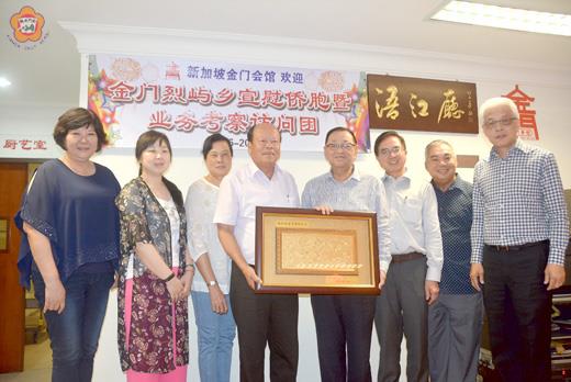 「月是故鄉圓,人是故鄉親」,由烈嶼鄉長洪成發領軍的星馬僑社訪問團,在拜訪新加坡文山聯誼社後,昨日續走訪新加坡金門會館,受到鄉僑熱情的接待。座談會中,鄉僑關心「金門大橋」施建的進展、縣府今年是否辦理「世界金門日」活動、也建議能陳展新加坡鄉僑出洋奮鬥歷史。洪成發鄉長、鄉代會主席洪若珊再三邀請鄉僑組團回鄉,感受鄉情,金門會館也回應於年底會帶更多中、青代子弟回到金門根源地尋根,延續鄉情。 烈嶼鄉106年度組團赴新加坡、馬來西亞宣慰僑胞暨業務考察活動,鄉長洪成發帶領鄉代會主席洪若珊、副主席洪燕玉、鄉代表方水萬、洪雅明、方駿洋、鄉公所顧問呂合成、鄉公所秘書方小萍等一行人,繼首站拜訪文山聯誼社後,昨日續第二站的拜訪新加坡金門會館,受到金門會館第一副主席陳篤漢、總務陳佳模、財政李志遠、外事方耀明、副總務黃正發、副財政洪建國、執行秘書郭秋裕、董事楊素美、董事林長鏢、康樂組主任許國振、董事蔡榮新、董事李財豐、董事盧振東、董事黃正順、董事洪奕冠、文教組副主任楊素萍、副女組副主任呂亞嬌、查帳蔡謀達等鄉僑熱情的歡迎,金門鄉情的情感流露無遺。 金門會館供奉「恩主公」陳淵分身神像,把牧馬拓荒精神帶到新加坡。洪成發帶領訪問團成員敬祭「恩主公」,並贈爐敬金,表達虔敬的心意 金門會館很關心家鄉事,特別安排一場座談會,和來訪的鄉親暢談家鄉事。商務繁忙的金門會館第一副主席陳篤漢,也特別撥冗趕回會館歡迎洪鄉長一行人。陳篤漢說,長期以來,金門會館和家鄉有著緊密的互動關係,「月是故鄉明,人是家鄉親」,鄉僑們很高興見到家鄉的鄉親,歡迎大家多留幾天「作客」,話鄉情。 洪成發感謝僑鄉的熱情接待,洪成發說,金門早年由於土地貧瘠,謀生不易,許多鄉親離開自己土生土長的故鄉,遠渡重洋下南洋打拚,鄉僑離鄉背井討生活的艱辛與生命搏鬥的辛酸與勇敢,令人敬佩,鄉僑在異鄉努力的打拚,事業有所成就,念念不忘的還是原鄉金門親人,屢屢匯款協助地方興建廟宇、協助政府辦教育、幫助改善金門親友的生活,鄉僑對於家鄉貢獻很多,鄉親津津樂道。 總務陳佳模介紹金門會館成立的歷史過程,陳佳模說,金門會館一直扮演服務鄉僑的平台,也是凝聚鄉情情感的地方,長期以來,金門會館積極參與公益事業,造福鄉僑福利,對發揚華族傳統文化和美德,不遺餘力。 洪建國延續父親洪天送熱心公益的精神,他一直參與會館的會務,尤以青年事務的區塊工作,貢獻良多。洪建國說,父親生前只要回到烈嶼家鄉,洪鄉長是第一個要探訪的老友,有著深厚的情誼。 新生代的洪奕冠日前才回到他爺爺的烈嶼黃厝老家,他說,家鄉的濃濃鄉情,令他難以忘懷,未來,他會帶同輩的親人回鄉尋根,延續這一份無法割捨的親情。 總務李志遠長期推動年青子弟回鄉尋根,他表示,未來還是會持續鼓勵新生代子弟回到金門根源地。 楊素萍很喜愛家鄉的環境,經常回鄉探訪親友,楊素萍建議縣政府、烈嶼鄉公所能陳展新加坡鄉僑出洋奮鬥事業的歷史。 洪成發鄉長、洪若珊主席、洪燕玉副主席再三歡迎鄉僑帶著第二代、第三代的金門華僑子弟回故鄉進行尋根或旅遊,讓新生代了解自己的根源地,拉近親友間的距離和情感。 洪成發也向鄉僑說明金門大橋興建的過程、以及目前施建的進展。洪成發說,金門大橋是所有金門人關心的建設,鄉親都很期盼大橋能早日完工。 洪成發說,世界金門日活動一定要在金門舉辦,才有意義性,透由活動來凝聚世界各地鄉僑的情感,也讓鄉僑回鄉看看家鄉發展的現況。 金門會館設晚宴款待,雙方互贈紀念品,陳篤漢僑領還特別贈送會館出刊的金門家鄉美食刊物,鄉僑和訪問團合影留念。訪問團和鄉僑內心感到十分的溫馨與喜悅之情,鄉僑歡呼聲迴盪現場,鄉情濃郁,氣氛感人。