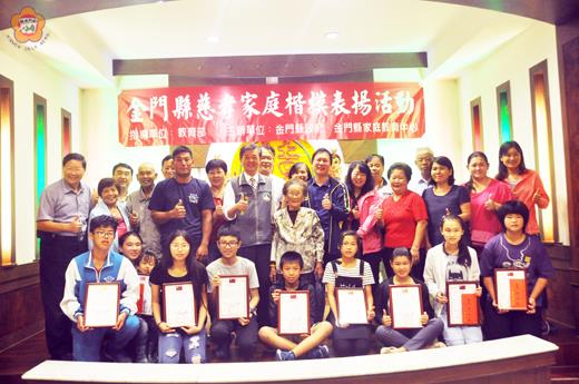每年五月是「慈孝家庭月」,為宣揚「父慈子孝、家庭和樂」的正向家庭觀念,金門縣政府特別舉辦「106年度慈孝家庭楷模選拔及表揚活動」,選出縣內九組慈孝家庭楷模,縣府秘書長林德恭代表陳縣長昨晚在海洋餐廳公開頒獎表揚,盼藉由此活動將家庭慈孝的愛與光散落到社會每一角落,讓社會更加祥和。 106年度慈孝家庭楷模表揚活動,由教育部指導,金門縣政府教育處、金門縣家庭教育中心主辦,並於昨日晚間在海洋餐廳舉行頒獎儀式,由縣府秘書長林德恭主持,教育處科長許能麗、家教中心主任王任益與學校校長、老師多人到場與接受表揚的家庭祝賀,而獲獎家庭上台受獎拍照,場面相當溫馨。 昨日活動中縣府秘書長林德恭頒獎表揚慈孝家庭楷模,給予高度肯定與祝福。林德恭表示,現代社會生活壓力大,人與人之間容易產生衝突,要能真正實踐「父慈子孝、家庭和樂」並非易事;為了喚起大家對正向家庭觀念的重視,縣府特別舉辦慈孝家庭楷模的遴選,希望藉由成功家庭的表揚,讓他們的事蹟成為父母與子女經營家庭的模範。期待透過學校教育帶來的正向能量,把金門美好的價值找回來,讓社會看到慈和善的力量。此外,他也強調,百善孝為先,能孝順的小孩家庭定是和樂、事業成功。而且懂得孝順的孩子心地一定友善,家和萬事興,也透過學校和家庭教育,期盼能喚起國人重視慈孝、表現孝道的傳統美德,展現出符合現代社會的具體慈孝行動,彰顯慈孝的永續傳承。 昨日獲林德恭表揚的慈孝家庭楷模,國小組有:古城國小董心慧,也是全國慈孝家庭楷模;多年國小莊金展、安瀾國小黃小燕、西口國小洪瑜均、賢庵國小洪珊慈;國中組有:楊東育(金沙國中)也是全國慈孝家庭楷模;謝采諭(金湖國中);高中職組則有金門高中的石佳鑫、金門農工梁宇佑。