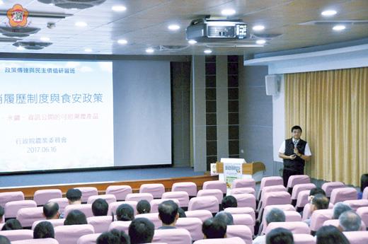 金門縣政府昨日邀請行政院農業委員會企劃處科長陳祈睿,就當前政府重要政策,有關產銷履歷制度與食安政策進行講解說明,讓參加的公務員更了解政府政策走向。 這場政策傳達與民主價值研習班,昨日上午九時三十分起在縣政府多媒體簡報室舉行。 陳祈睿就當前食安(農安)政策、農產品標章及溯源標示、何謂農產品產銷履歷制度│安全、永續、資訊公開的可追溯農產品,進行說明。他指出,農委會自九十六年推動產銷履歷驗證制度,強調安全、永續、公開、可追溯,透過嚴謹的驗證把關,期讓消費者只看標章就能買到具備自己重視價值的農產品。 陳祈睿也指出,能出示產銷履歷證書的生產者,供應的就是安全、永續、資訊公開、可追溯(TAP)產品嗎?他認為消費者千萬不要再這麼想了,因為,通過驗證農友不一定所有的產品都有驗證。而產銷履歷是自願性驗證,幫消費市場嚴謹把關農產品安全與永續;產銷履歷不是單純的資訊公開制度。 陳祈睿強調,政府在農安管理上,同時運用推力與拉力,推力部分是以查核取締為手段,促使違反規定者改善或退場;拉力則是提供政策或市場誘因,引導業者持續改善。而TAP是標章,屬於拉力方法之一,運用第三方驗證制度,協助消費市場確認農產品的安全、永續、資訊公開等特質。因此買TAP農產品一定要認標章與追溯碼,也才能享受第三方驗證機構把關的服務。所以,支持產銷履歷,不但能照顧自己和家人的健康,也能愛護環境,帶動台灣農業永續發展。