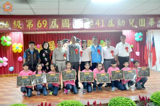 古寧國小昨(十六)日舉辦「古寧國小部第六十九屆暨幼兒部第四十一屆畢業典禮」,古寧國小國小部及幼兒園的畢業生在師長們衷心的祝福下進入國中小階段。而校長黃芸芸送給所有畢業生「一個期待」,希望你們永遠保持學習的熱情(那是一種習慣、一種態度),「一句座右銘」,是沒有最好,只有更好,勇於和自己挑戰。 古寧國小一○六級畢業典禮於昨日上午九時卅分在古寧國小學生活動中心舉行,典禮由校長黃芸芸主持,省府秘書長翁明志、縣府參議翁自保、金寧鄉長陳成勇、立委楊鎮浯金門服務處主任孫國智、縣府秘書李文俊、金寧鄉民代表會副主席李開陣、代表李正騰、金寧中小學校長陳雅蘭、金城國中校長許維民、湖埔校長蔡玉羨、金鼎校長蔡雪芳、金門國家公園西站主任蔡立安等貴賓以及家長會長、學生家長到場給予學生祝福。 典禮中,校方特別邀請與會貴賓頒發各領域表現優秀的學生獎品與獎狀;另校方也代為頒發增賢榮譽獎勵金給予李瑋翎、李潔、李佳凌;頒發李張東華紀念獎助學金給予莊欣媛、何昕芳、王正柏、莊旭城、李宥萱、許家泓等人。 而在校的學弟妹們也推出今年成立小提琴社成果演出、各班級民俗才藝表演,精彩歌舞演出,十分的活潑逗趣,更博取來賓家長熱烈掌聲。