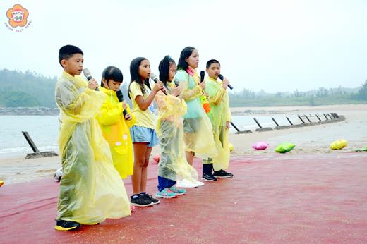 述美國小風雨無阻、馬山海岸歡送畢生!述美國小昨日舉行別開生面的畢業典禮,將活動場地移至馬山海岸舉行,過程中雖然飄著雨勢,但仍阻擋不了師生們的熱情,眾人在海岸上以高歌歡唱、闖關遊戲等節目歡送本屆畢業生,校長劉界宏也期許畢業生們踏在故鄉的泥土上感念先人的恩澤與師長的教誨,將來學業有成回饋家鄉! 這場畢業典禮是在昨天上午九時三十分於馬山海岸沙灘上舉行,述美國小的師生們前一日就冒著風雨搭棚擺設,迎接這一場前所未見的盛會。而縣府參議許寬、金沙代理鎮長楊志斌、縣議員李應文等人也到場致意,述美國小的家長們更是踴躍與會,見證這場別具意義的畢業典禮。 畢業典禮由校長劉界宏親自主持,過程中除與現場貴賓們頒獎表揚本屆獲獎的績優學生外,校方並安排了歌唱表演、數來寶、空手道、闖關遊戲等節目,在一片歡樂的氣氛中送別畢業生。 值得一提的是,述美國小的畢業典禮並非僅有歡樂的海岸送別。該校已連續辦理二天的畢業典禮活動,小學畢業生們在校方與老師的帶領下,早已展開單車環島的壯舉,過程中還紮營珠山民宿等地。至於幼兒園的同學們,也在老師的陪同下,於十五日早上徒步攀登太武山,並於下午驗收游泳教學成果。十五日晚間,師生與家長們則在校內舉行營火晚會,交流彼此的學習心得、享用美味的烤肉,全校共同渡過一個最豐富、最有在地文化體驗的畢業典禮。