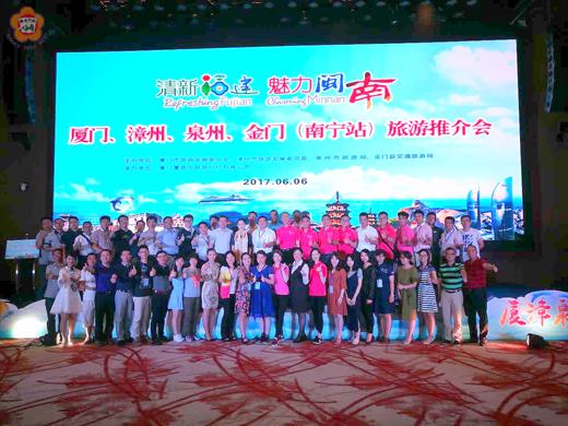 由金門縣政府觀光處、金門縣旅行商業同業公會、金門縣觀光特產協會組成的「金門旅遊推介團」,與大陸廈、漳、泉三地旅遊局共同於6月1日至6月9日赴貴州省貴陽、黔南州、廣西南寧市及北海市辦理本年度第一場「廈漳泉金觀光旅遊聯合推介會」活動,期吸引更多陸客來金觀光旅遊。 本次旅遊推介團由金門縣政府參議許寬率金門縣旅行商業同業公會理事長林永標、金門縣觀光特產協會理事長李翌漳,以及縣府觀光處與大陸事務辦公室等一行,於6月2日下午,在貴陽市拉開序幕。 昨(6)日下午並在廣西南寧市舉行觀光旅遊聯合推介會,獲得當地政府和旅遊局大力支持,現場更有將近百名旅行業者和媒體朋友與會,讓推介會顯得熱鬧非凡,尤其與會業者更深入瞭解金門旅遊資源及赴金自由行相關政策。 會中,金門縣政府參議許寬介紹金門保存良好的閩南文化,記載著僑胞落番發展的僑鄉文化,以及得天獨厚的自然生態風光,並歡迎大家踴躍來金門一一體驗。 透過本次活動,也讓大陸旅遊業者對金門有更進一步的認識,同時也對如何透過到廈門或泉州旅遊後以更簡便的方式、更短的時間到最接近台灣的金門旅遊,體驗兩地不同的旅遊感受及不同的文化差別,同時親臨金門高粱酒的產地,領略金門高粱酒兩岸飄香的特殊口感,以及戰地前線所發散出的豐富元素。 另外,許寬也再次的熱烈邀請所有大陸朋友一同共襄盛舉今年7月由金門縣政府觀光處,網羅兩岸四地重量級藝人和樂團齊聚首次舉辦「QUEMOY國際海島音樂季」,與大家邊吹幸福的夏季海風,邊徜徉在熱鬧的音樂裡。 縣府觀光處並以「發現金門」影片,利用聯合推介會詳盡介紹金門的旅遊亮點,包括:戰地文化、閩式建築、生態資源、免稅金門、觀光特產等主題為訴求,並說明目前兩岸便捷的旅遊路線與赴金型態,讓與會人員更認識金門、了解金門,提升金門觀光客源。