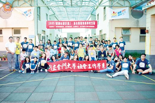 關懷弱勢、體驗人情溫暖,金門大學社會工作學系學生在老師楊志誠帶領下,於日前前往金門縣私立晨光教養家園與園生們進行互動。並且透過闖關遊戲的方式,了解每位園生身心狀況,也藉由遊戲互動,讓園生歡度一個快樂的下午。 前往晨光與園生互動的學生,是由老師楊志誠帶領大一的全體學生們,在五月三十一日下午前往,學生們秉持著「用愛來消弭礙,用愛去包容礙,有愛無礙」的想法,設計了一連串以「愛」為主題的闖關活動。首先藉由愛的丟乒乓、愛的保齡球、愛的過山洞等三關卡,使園生透過活動能培養人際互動關係來熟悉彼此。另外也藉著體驗動態性的活動,增強肢體靈活度。透過遊戲進行,也訓練園生們的注意力、思考能力及團隊合作能力。 活動過程中,社工系同學還透過設計愛的許願卡活動,讓園生們能更了解自己的願望及夢想,不管是用寫、用畫等方式,目的皆在期許園生們能正視自己的理想,並養成以此為目標,盡力達成的心。而活動溫馨愉快,金大社工系同學們也與園生一起跳舞、轉圈圈,彷彿身體是沒有屏障一樣,玩得不亦樂乎,笑得合不攏嘴。 社工系同學黃上豪表示,在與身障者的互動中學到了很多,體會遇到逆境也要保持樂觀的態度繼續前進。且社工系學生未來有可能從事與身障者相關之行業,能有機會到身障機構服務學習,了解身障者的需求以及與其相處的方式是很好的一種學習方式。 活動後,晨光教養家園創辦人施美珠與老師陳長源等人,也針對院所進行詳細說明,讓學生們更加了解身障機構收容的運作與社工所扮演的角色。