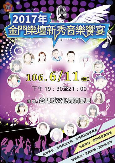 由金門縣音樂協會所主辦的「二○一七年金門樂壇新秀音樂饗宴」,將在本周日(十一日)的晚間七時三十分起,在金門縣文化局演出,歡迎地區民眾踴躍到場聆聽,欣賞地區音樂新秀們努力的成果,也給予孩子們鼓勵。 這場音樂饗宴,將在六月十一日(星期日)晚間七時三十分起至九時止,在文化局演藝廳內演奏,屆時將會有地區十八位的樂壇後起之秀登台演出,帶給鄉親一個愉快的周末夜。金門縣音樂協會表示,這場饗宴主要是為了增加學琴和學唱歌的孩子,能夠增加他們的上台演出經驗,藉此交流平台相互觀摩學習,刺激學習進步,提昇地區的音樂演出水準。 周日即將登台的十八位新秀學子,都是由獲得全縣鋼琴比賽與獨唱比賽得獎學生、或參加全國音樂比賽國樂、管樂獨奏及重奏團得獎之學生擔綱演出,演出曲目絕對是精彩可期。 金門縣音樂協會介紹,這十八位登場的學子,分別是: 金沙國小張鈺邦(金門縣一○五年中小學學生鋼琴國小高年級組第一名)、開瑄國小蔡睿恩(二○一七年鋼琴比賽國小低年組第二名)、金鼎國小王琬晶(一○五年金門縣中小學學生獨唱比賽國小高年級組第三名)、金湖國小陳又寧(二○一六年亞洲盃國際音樂大賽古典鋼琴幼童組第四名)、金湖國小紀有容(二○一六年金門縣鋼琴比賽高年級組第二名)、中正國小王麒雅(一○五年金門縣中小學學生獨唱賽-小高組第一名)、中正國小林品辰(二○一六年金門縣鋼琴比賽中年級組第一名)、金城國小黃芊裴(二○一六年台北文化盃音樂大賽國小六年級組第四名)、金城國中陳又禕(一○五學年全國學生音樂比賽揚琴獨奏國中組B組優等)、金寧中小學翁姚薰(一○五年獨唱比賽國中組第三名)、中正國小陳楚甯(二○一六希朵夫盃國際音樂大賽古典鋼琴幼童組第一名)、中正國小黃沛媛(二○一七年北區亞洲盃國際音樂大賽三年級組第二名)、中正國小許靖沂(一○五學年度國中小獨唱比賽-中年級組第二名、金門縣國小區域資優計畫培訓選手)、中正國小吳孟甄(二○一六年金門縣鋼琴比賽高年級組第三名)、金湖國中陳培銘(一○四、一○五學年度獨唱比賽國中組特優)、金城國中張宸瑋(二○一六年全國學生音樂大賽鋼琴獨奏國中B組甲等,金門縣鋼琴比賽國中組第一名)、金門高中余陳渝(一○五年獨唱比賽高中組第一名)、金門高中王彥博(曾多次榮獲金門鋼琴比賽及文化盃鋼琴比賽第一名)。