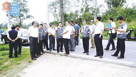 金門縣議會第六屆第五次定期會議,昨(二)日第三組縣政總質詢,經議員提議,會同縣府各局處相關單位,先後前往視察料羅海濱公園、南石滬公園等處,午後則是視察長寮段重劃區、金門大橋旁堤岸、水頭旅客服務中心規劃等地區建設,了解現況,並實地與縣府官員進行討論、交換意見,尋找可行的改善方案。 金門縣議會第三組總質詢,昨日上午十時三十分起,由議長洪麗萍、副議長謝東龍,以及議員李應文、許華玉、楊永立、蔡春生、李誠智等人,先後前往金湖料羅周邊以及金門大橋、水頭等地區進行考察。上午由縣府秘書長林德恭率領縣府工務、觀光等行政團隊陪同前往視察;午後二時三十分起,則是由縣長陳福海率林德恭、各局處首長等人,陪同議員走訪,了解縣政問題。 一行人首先前往料羅的媽祖公園,藉由其居高臨下的地勢,實地了解料羅港區建設,希望縣府能將料羅港建設完善,讓噸位更大的船隻停泊,對於地區觀光也有所幫助。 隨後前往南石滬公園以及料羅海濱公園等地,了解該處不足之處,謝東龍表示,金門國家公園佔了金門五分之一的面積,而且限制很多,他期望金門可以打造出國際級的觀光景點,他認為金管處有自己的經費與打算,縣府可以開發自己所可以控制而且有潛力的景點。 午後則是先前往長寮段重劃區,聽取湖下村長的陳情,針對該段農路的改善,尋找適當的解決方式。隨後前往金門大橋邊海堤,親自了解該處泥沙被淘空的情況。最後前往水頭,視察水頭旅客服務中心建設地點,同時也前往勘查一之一道路的後豐港段。