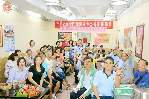 今年端午節前夕,金門西園旅台公共事務協會為了凝聚旅台鄉親情感,與去年同樣在中和區南勢角黃家麵線餐廳舉辦「106年歡度端午節粽葉飄香聯誼活動」。金門縣政府北區服務處主任陳再旺代表陳福海縣長向西園鄉親賀節,祝福鄉親「闔家平安、端午佳節愉快」。同時新北市陳錦錠議員,也前來蒞臨指導,與旅台的金門西園鄉親歡度端午佳節。 活動當天,報名參加粽葉飄香活動的鄉親相當踴躍,早早就來到活動現場。活動長黃夢蓮偕同志工媽媽,於兩天前就開始進行採購備料及粽葉清洗衛生乾淨的前置作業,隨後並由志工媽媽負責將食材料理入味,然後再由鄉親一起來體驗包粽子的樂趣,感受一下端午傳統節慶的氛圍。 在志工媽媽和鄉親的努力下,900多顆風味絕佳道地的金門肉粽先後出爐,一串串地掛在活動會場,鄉親嚐後也都讚不絕口。黃理事長在致詞中,除了感謝鄉親的熱烈參與,也感謝所有的會職人員及志工媽媽的辛勞,讓每年的活動,都能夠辦得有聲有色,所以他期望活動能夠延續下去。 活動於當日下2點多圓滿結束,西園協會也貼心的為每一位參加活動的鄉親,準備了肉粽當伴手禮,讓鄉親帶回家與家人分享。