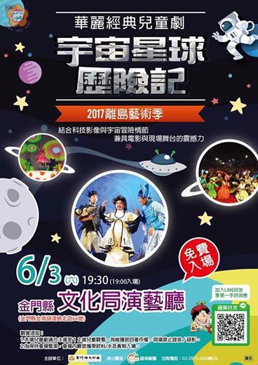 好看的兒童劇將於文化局登場!蘋果劇團科幻風巨作《宇宙星球歷險記》於六月三日星期六晚間七點半,於金門縣文化局演藝廳上演!活動採取免費入場、自由入座方式,歡迎民眾前往觀賞! 文化局表示,國內知名兒童劇團-蘋果劇團秉持著「戲要被人看見才叫做戲」的精神,將演出帶到離島,希望讓更多偏鄉的民眾感受戲劇的無遠弗屆魔力。蘋果劇團表示:「《宇宙星球歷險記》劇中天馬行空的科幻背景令人大開眼界,再透過一連串冒險故事,告訴小朋友追求真理正義以及包容、同理心和尊重的價值。」 劇情內容方面,劇團將演出向流星雨許願的日子即將到來,宇宙的人民無不狂歡,但是充滿神力的王冠卻被邪惡的黑洞魔王奪走了!究竟王子亞伯、護衛阿丹和太空人吉恩,能不能遵循巫師的預言,蒐集到三顆聖隕石,擊敗法力無邊的黑洞魔王呢? 劇中莊嚴神聖的流星石王國、機關風格的時鐘星球、歡樂活潑的跳跳星球等等,都是《宇宙星球歷險記》的經典橋段,透過戲劇與教育做結合,滿足大小朋友對於神秘宇宙的好奇心與幻想力。相關資訊請洽:蘋果劇團02-2975-4400。