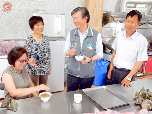 圖文/陳冠霖 端午節連假,各社區舉辦聯誼活動,金湖鎮包括信義新村、尚義、正義、夏興、新頭、料羅新村、湖前、峰上、下莊等社區都舉辦包肉粽聯誼活動。位於金湖鎮的下莊社區,也在昨(29)日中午開始包肉粽,大人小孩都來參加,忙著準備粽料以及清洗粽葉,理事長和居民忙著包粽子,一串串粽子高掛在架子上,粽羽飄香,志工把剛煮好熱騰騰、粽香四溢的肉粽,端上桌一起慶祝。縣府秘書長林德恭伉儷、秘書黃秀珍、金湖鎮代陳向鑫等人也到場與民同樂。